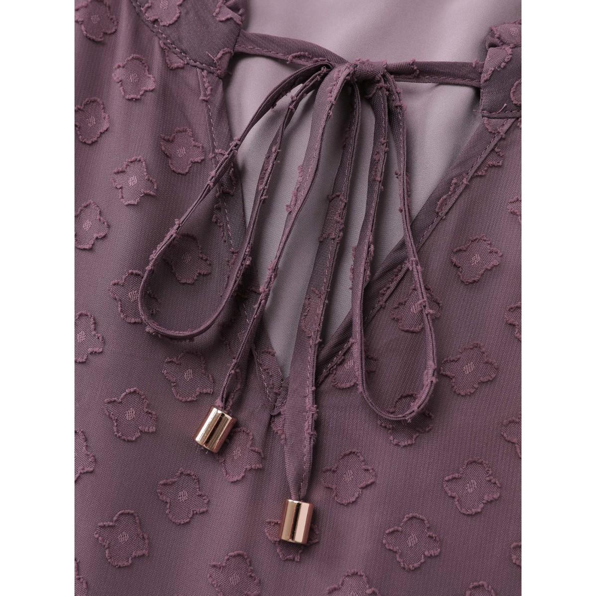 Plus Size Ditsy Floral Layered Flutter Hem Lace Insert Dress Mauve Women Vacation Elastic cuffs V-neck Elbow-length sleeve Curvy Midi Dress BloomChic 28/5X