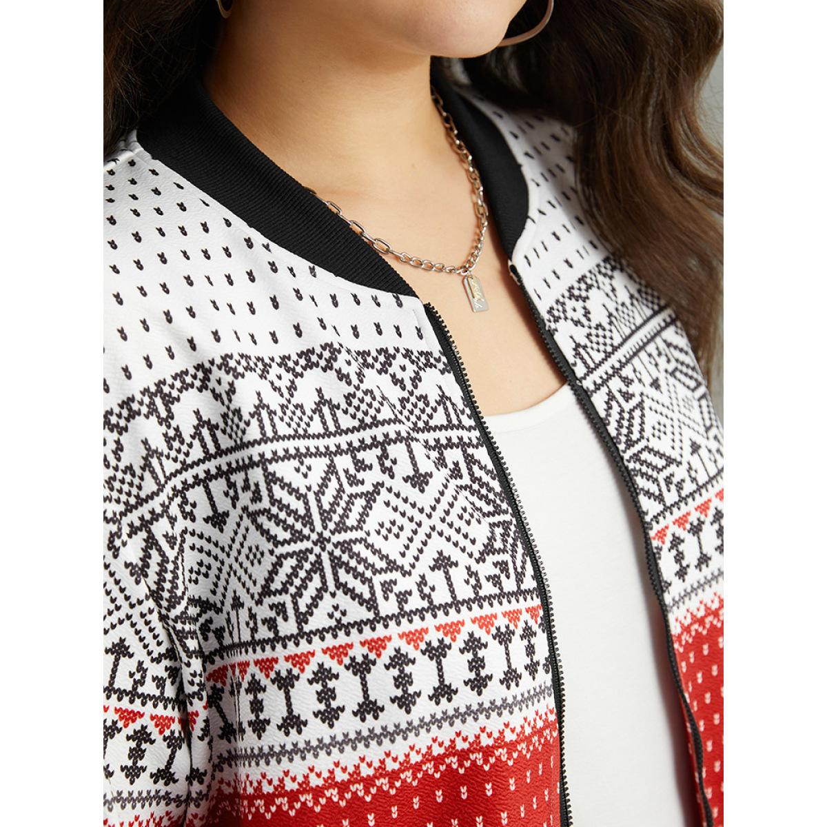 Plus Size Christmas Patchwork Zipper Contrast Jacket Women Red Elastic cuffs Dailywear Jackets BloomChic 18-20/2X