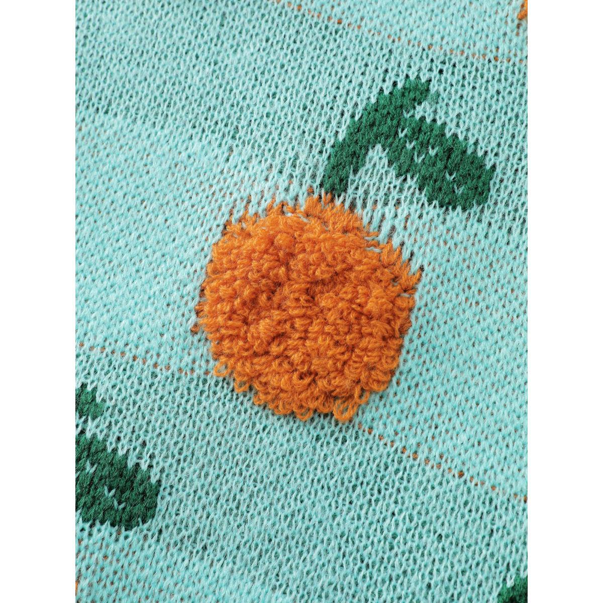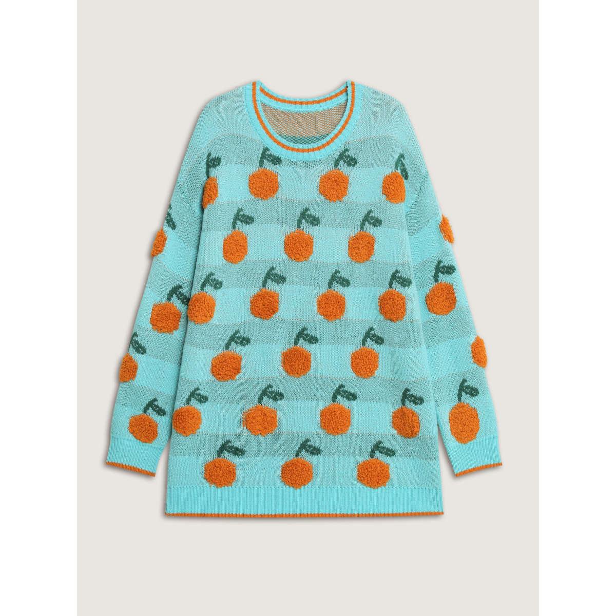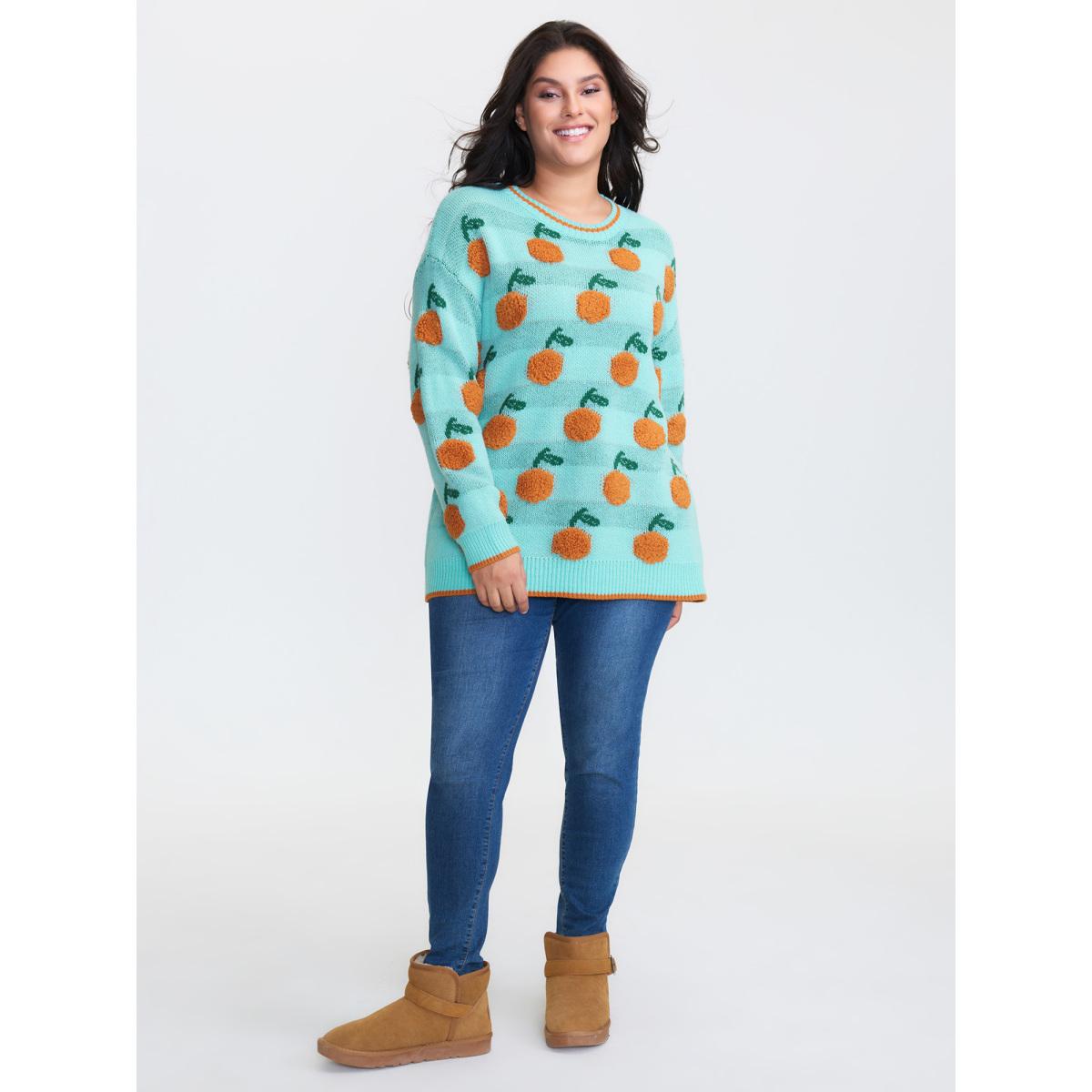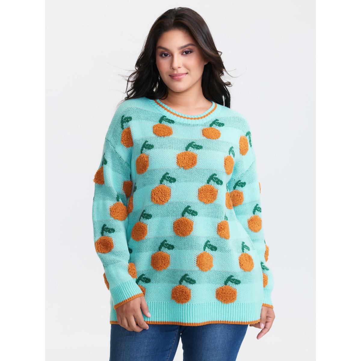 Plus Size Citrus Pattern Contrast Edge Ribbed Pullover Arctic Women Playful Loose Long Sleeve Round Neck Casual Pullovers BloomChic 28/5X