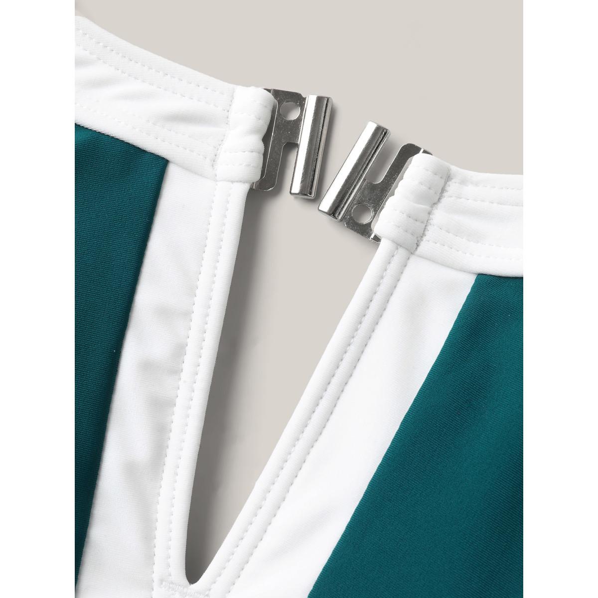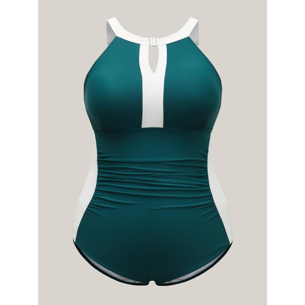 Plus Size Color Block Keyhole One-Piece Swimsuit Women's Swimwear Teal Resort Gathered Curve Bathing Suits High stretch One Pieces BloomChic 28/5X