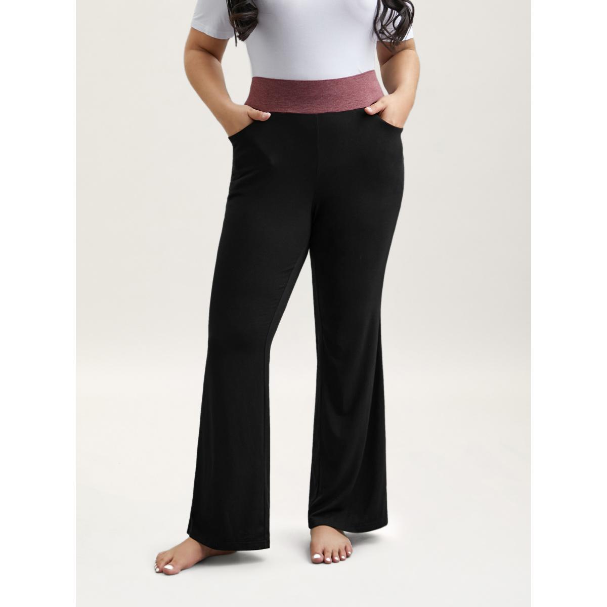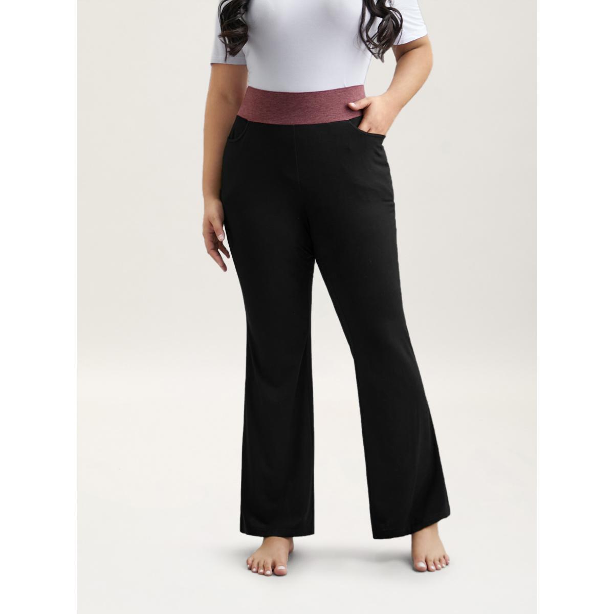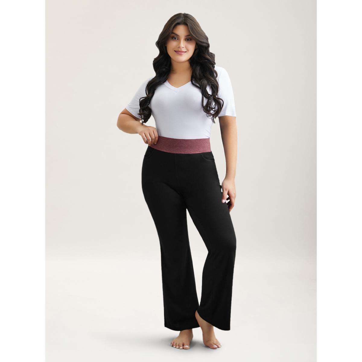 Plus Size Color-Block Mid Rise Tight Pants Women Black Casual Medium stretch Bootcut Mid Rise Everyday Leggings BloomChic 18-20/2X