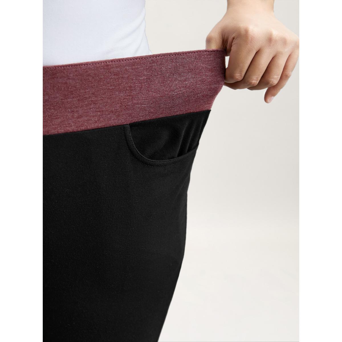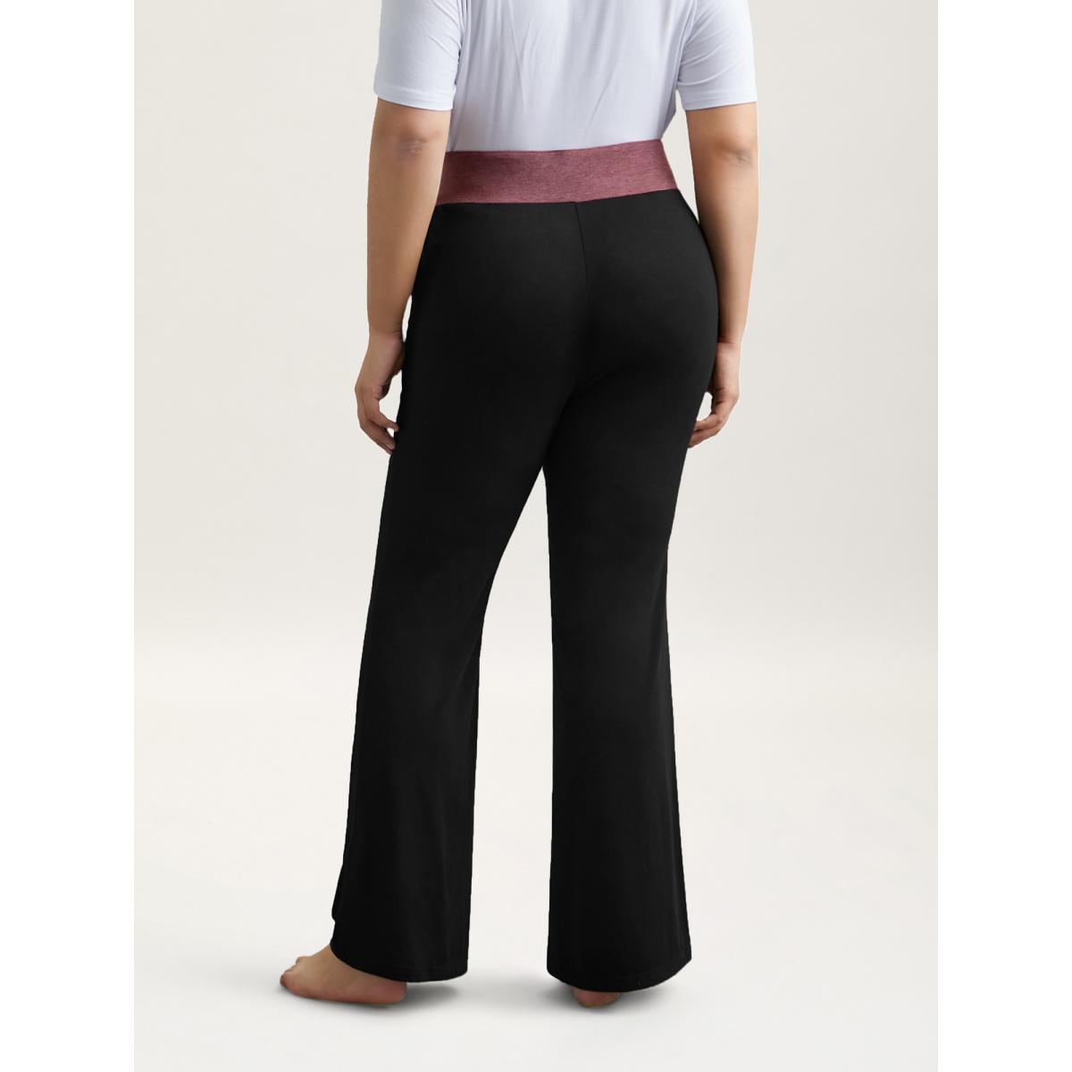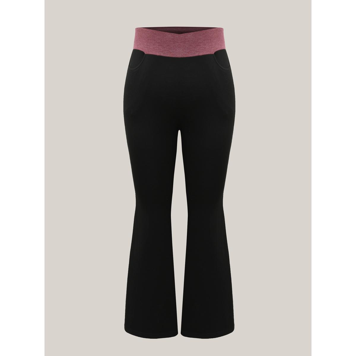 Plus Size Color-Block Mid Rise Tight Pants Women Black Casual Medium stretch Bootcut Mid Rise Everyday Leggings BloomChic 18-20/2X