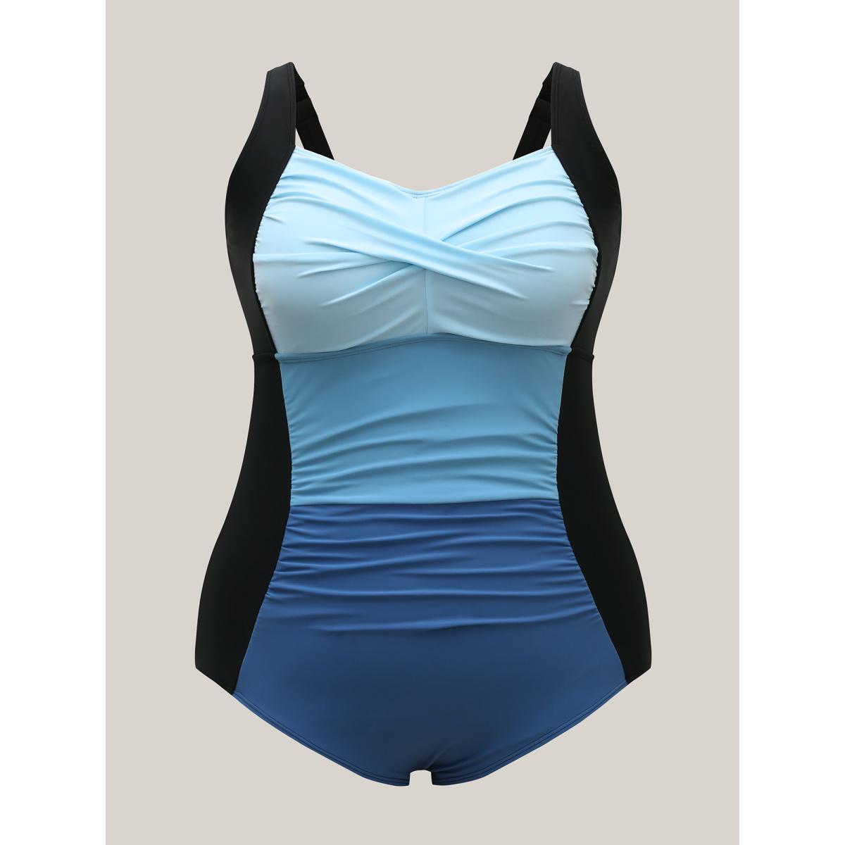 Plus Size Color Block Ruched One-Piece Swimsuit Women's Swimwear Indigo Resort Twist Curve Bathing Suits High stretch One Pieces BloomChic 10/M