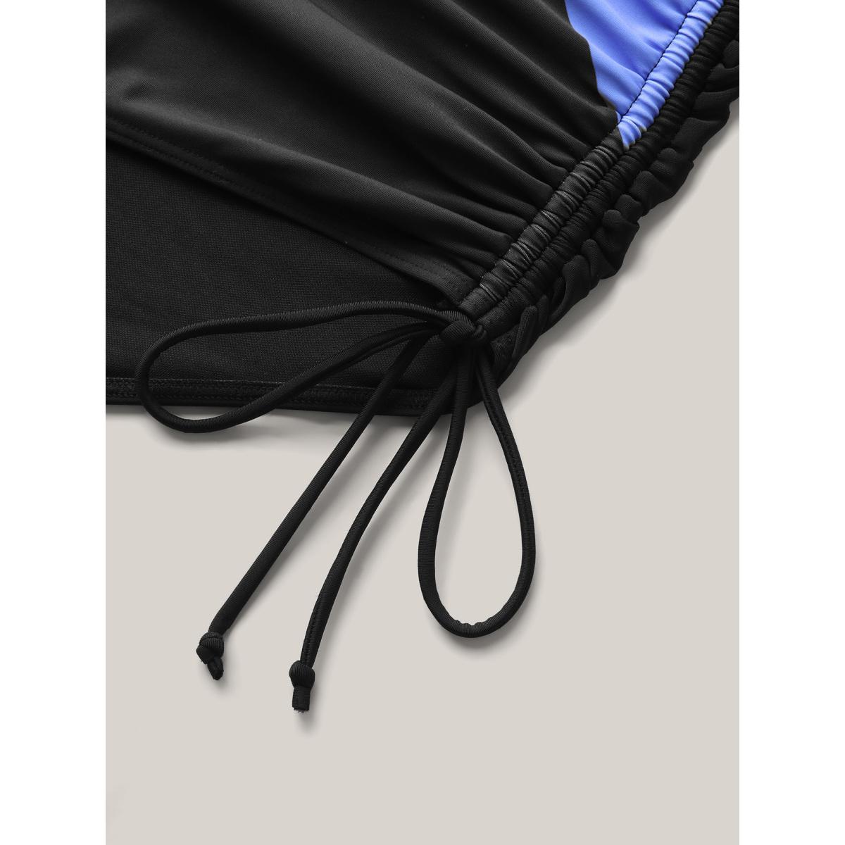 Plus Size Color Block Side Drawstring One-Piece Swimsuit Women's Swimwear Mediumblue Beach Contrast Curve Bathing Suits High stretch One Pieces BloomChic 10/M