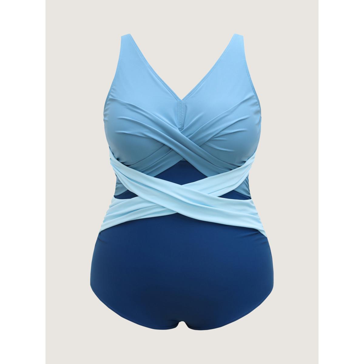 Plus Size Color-Block Twist Front One-Piece Swimsuit Women's Swimwear Aegean Resort Twist Curve Bathing Suits High stretch One Pieces BloomChic 12/L