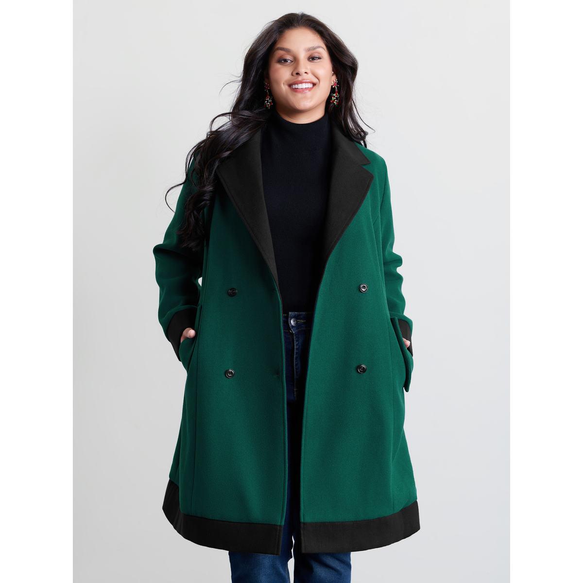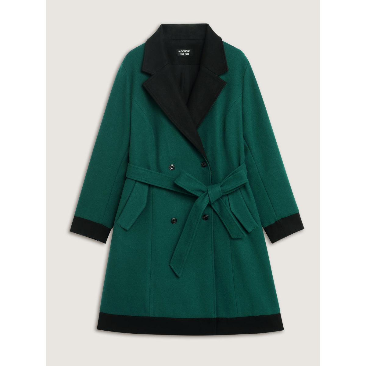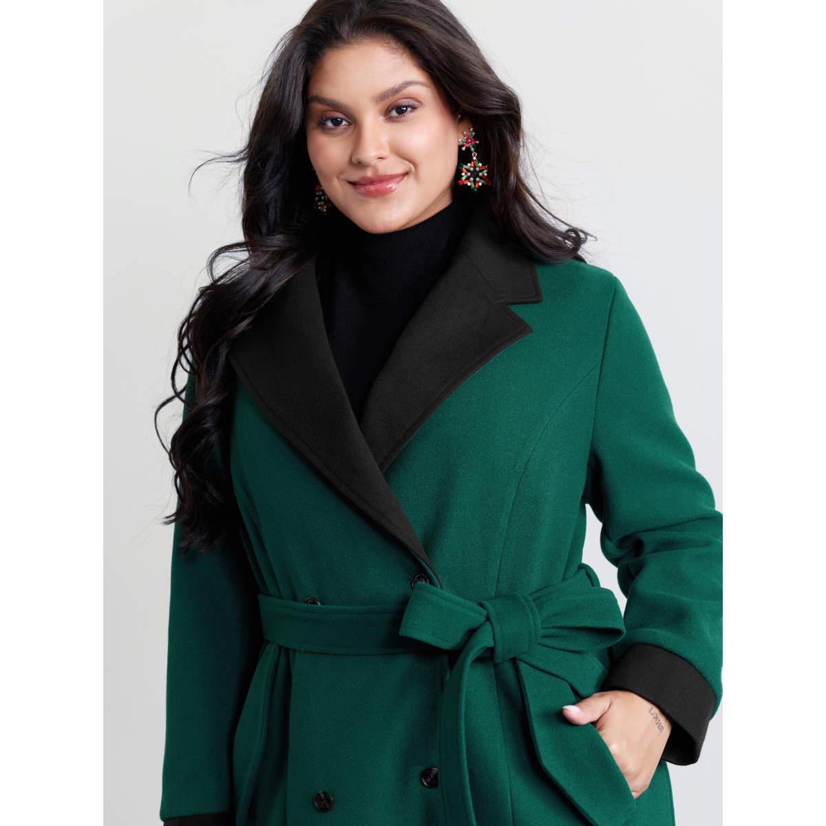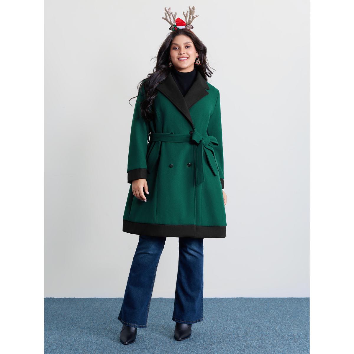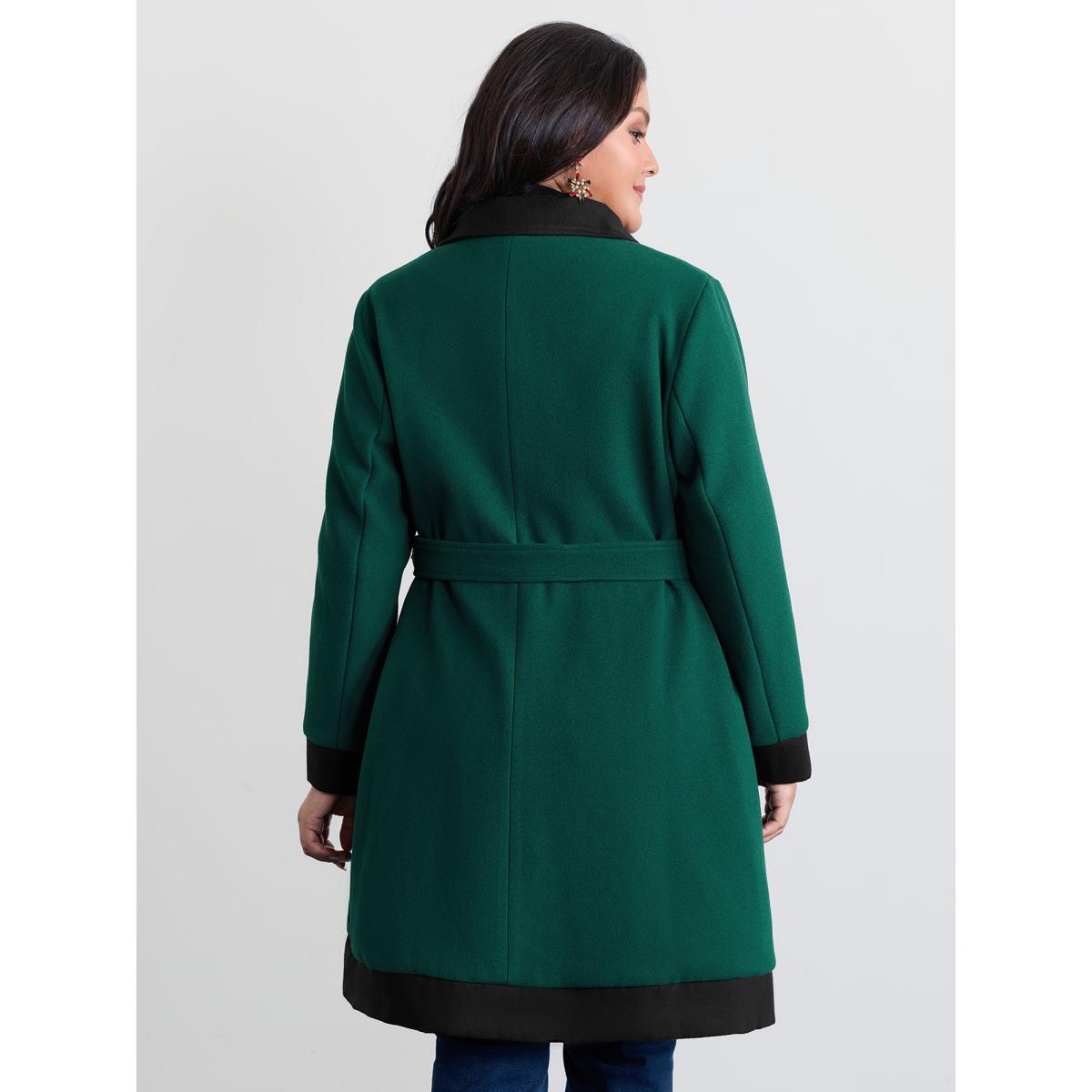 Plus Size Color Contrast Belted Lined Coat Women Emerald Retro Belted Ladies Elegant Winter Coats BloomChic 30/6X