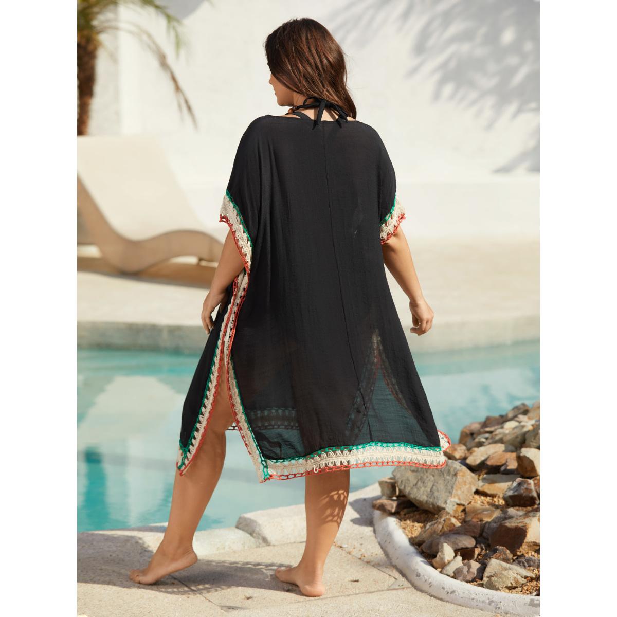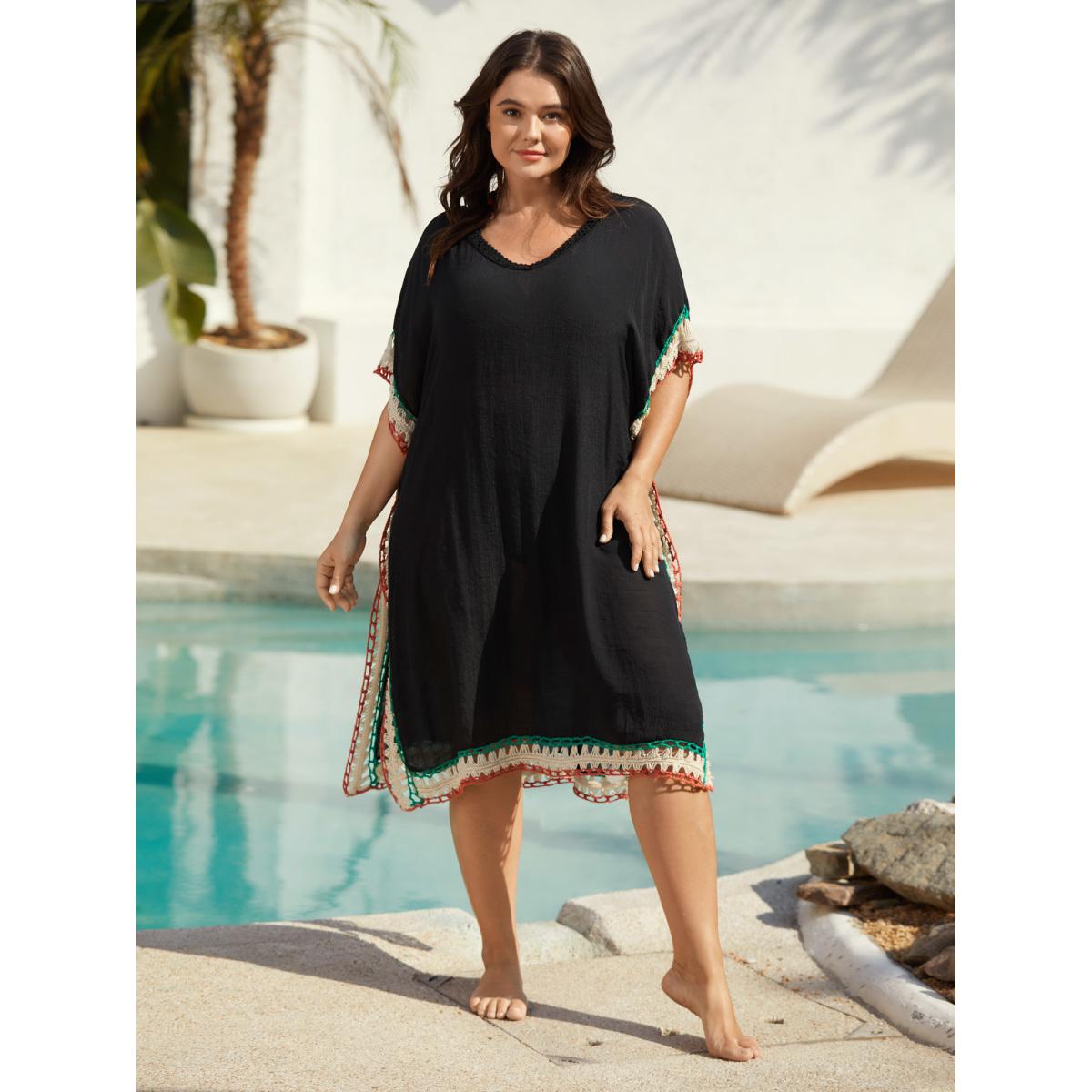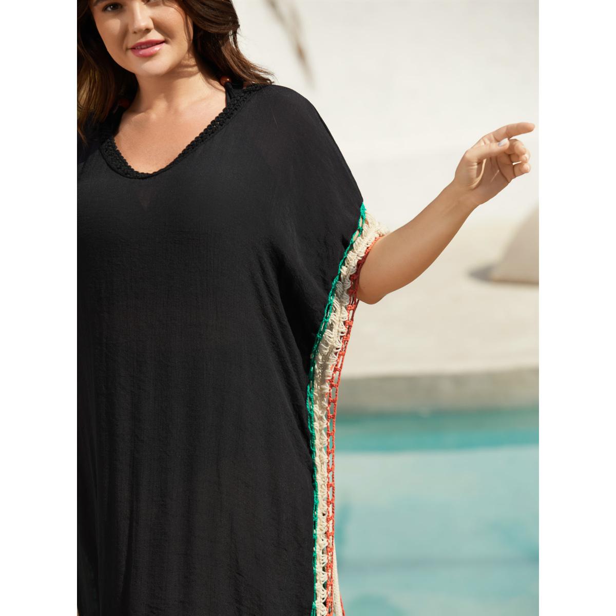Plus Size Color Contrast Cut-Out Swim Cover-Up Women's Swimwear Black Resort Oversized Contrast Curve Swim Cover Ups BloomChic 12/L