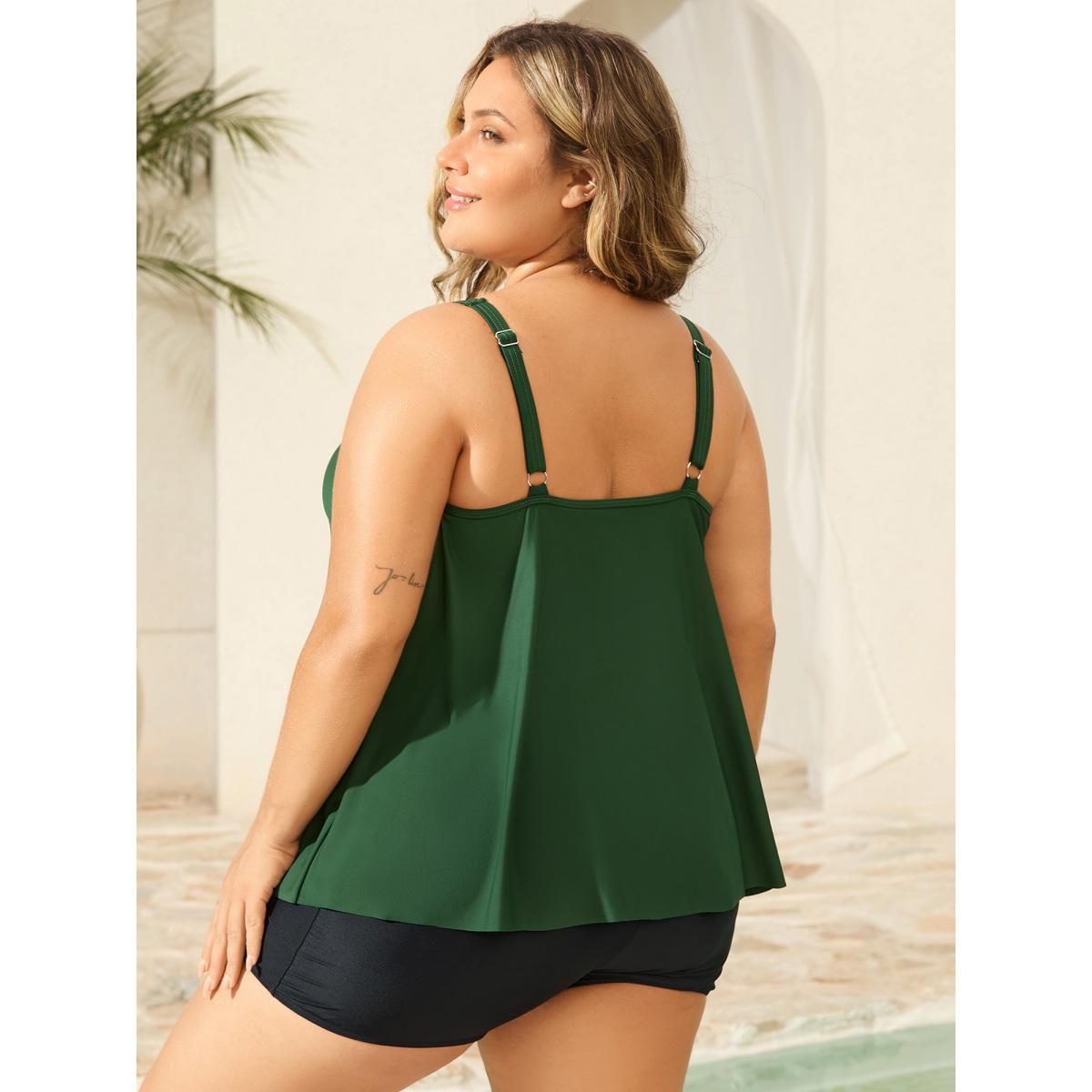 Plus Size Color Contrast Layered Keyhole Swim Top Women's Swimwear ArmyGreen Resort Cut-Out High stretch Bodycon U-neck Curve Swim Tops BloomChic 26/4X