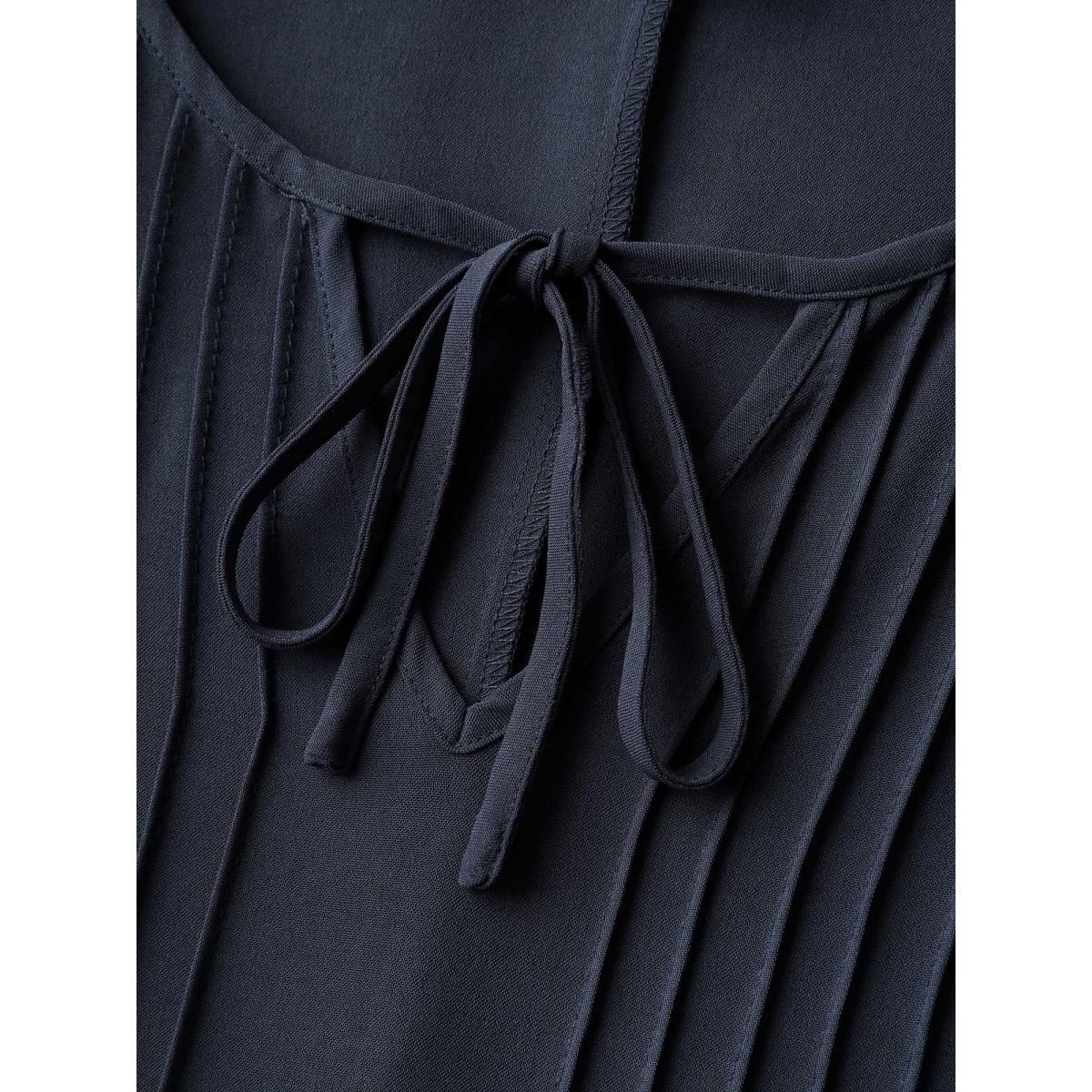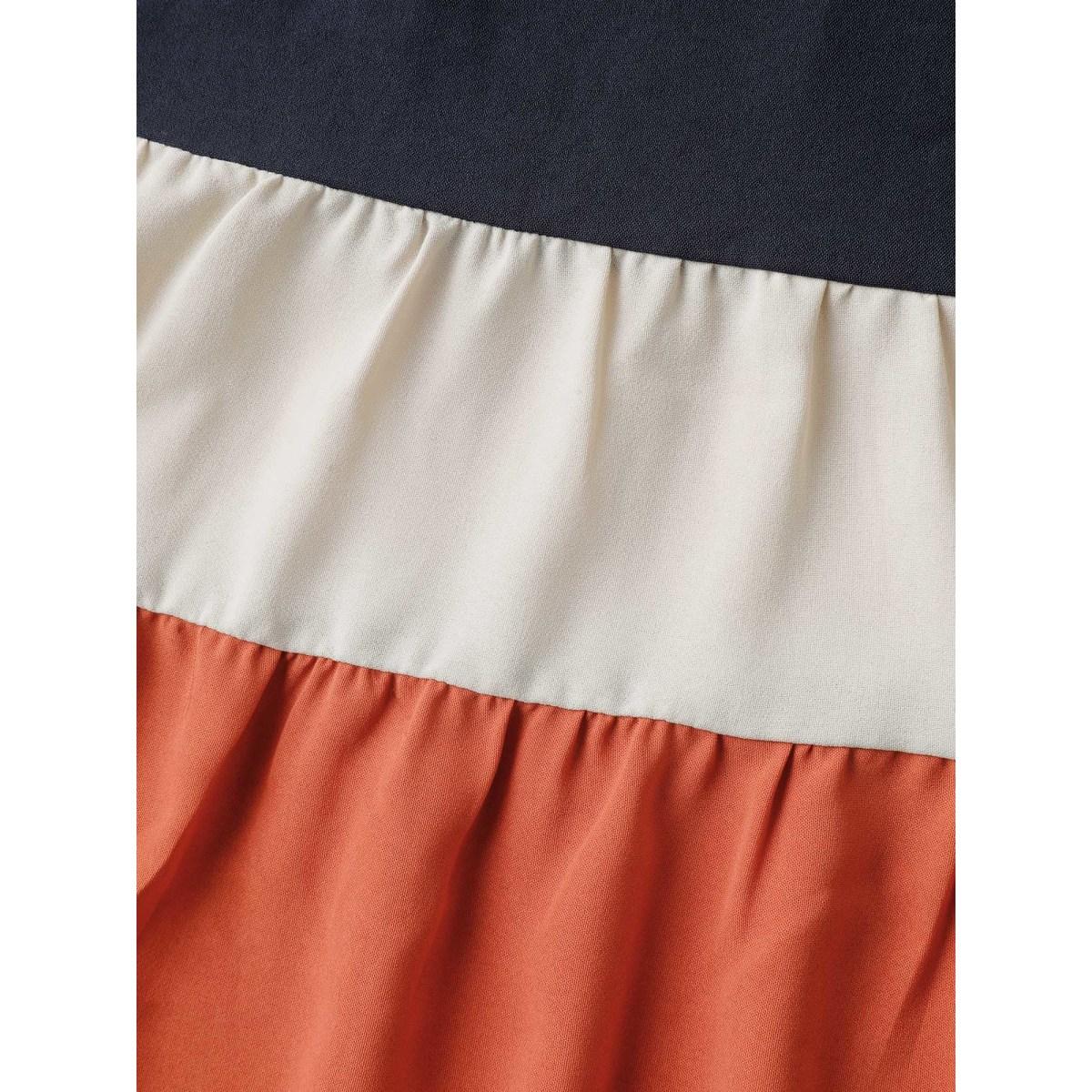 Plus Size Color Contrast Plicated Detail Midi Dress Multicolor Women Leisure Tucked seam Flat collar with V-notch Short sleeve Curvy BloomChic 14-16/1X