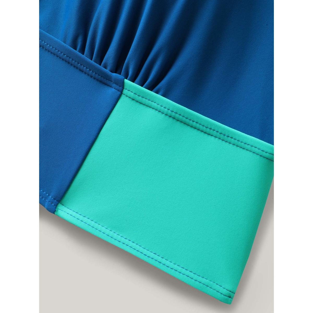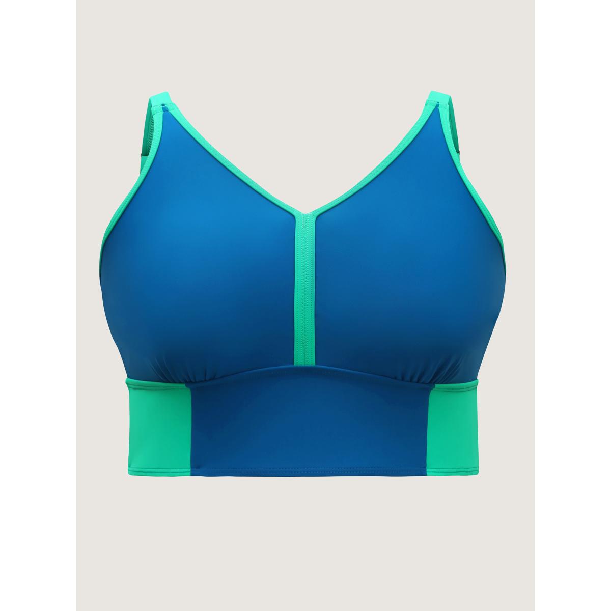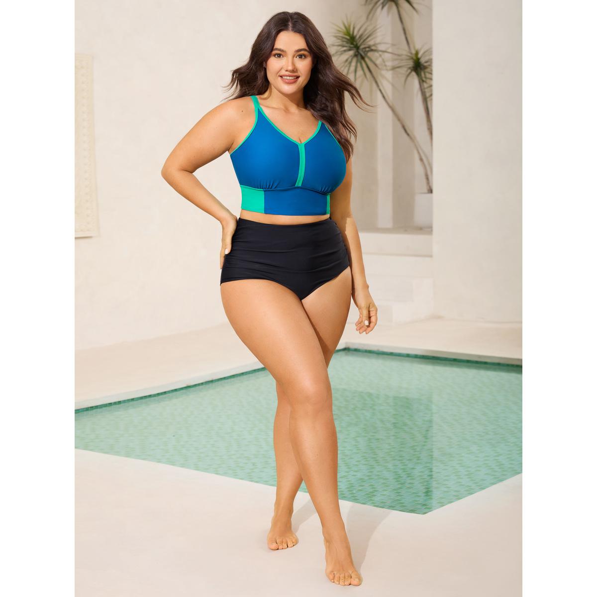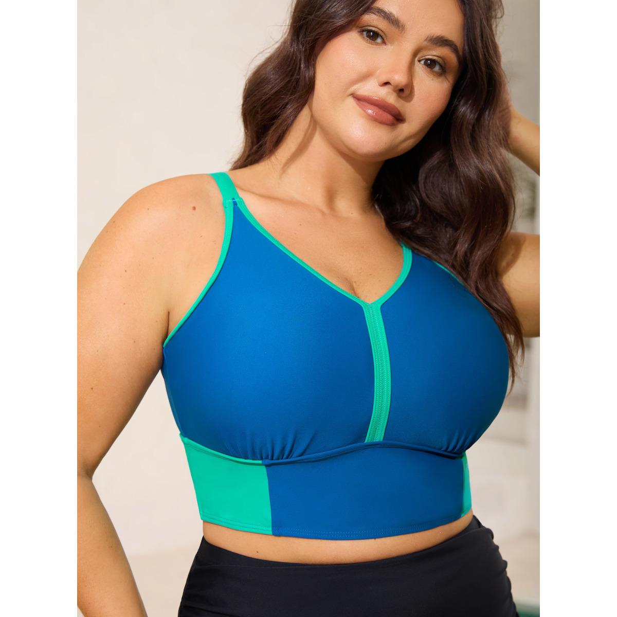Plus Size Color Contrast V-Neck Swim Top Women's Swimwear Cerulean Resort Contrast High stretch Skinny U-neck Curve Swim Tops BloomChic 26/4X