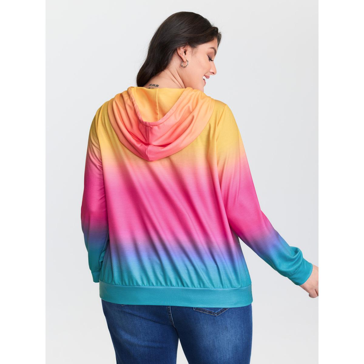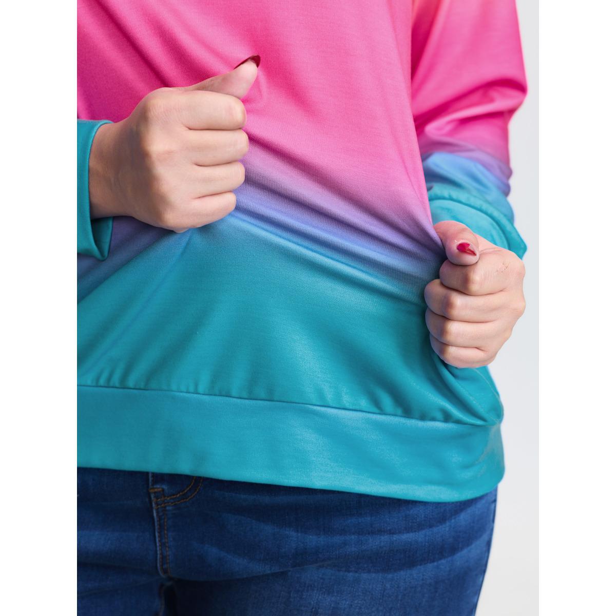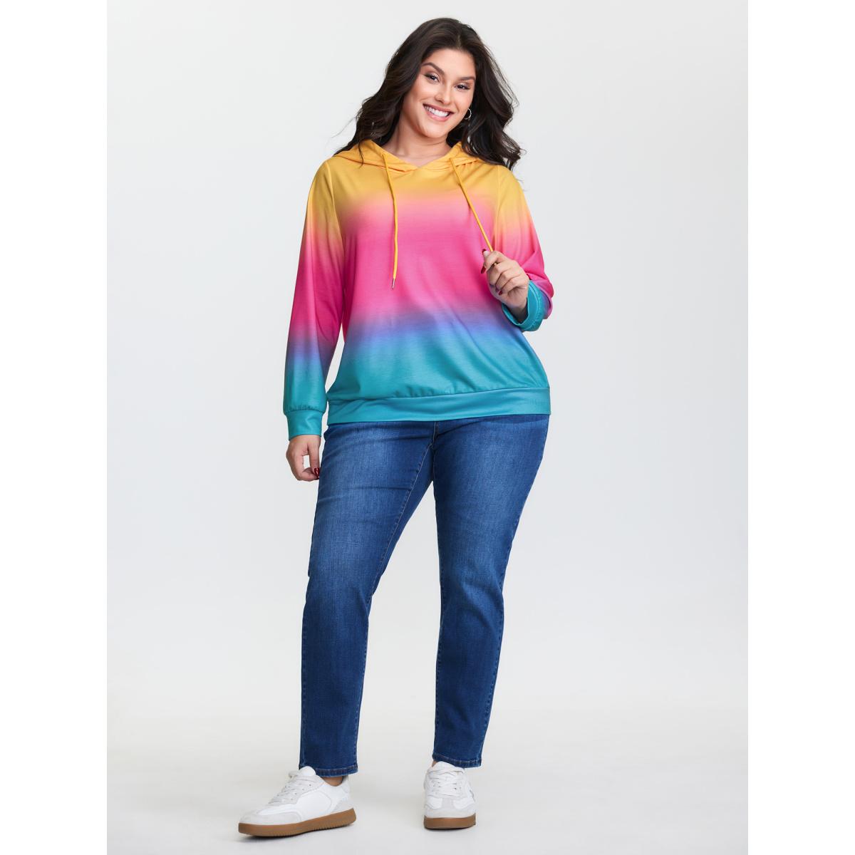 Plus Size Color Gradient Stretchy Hem Hoodie Women Multicolor Playful Non Hooded Casual Sweatshirts BloomChic 28/5X