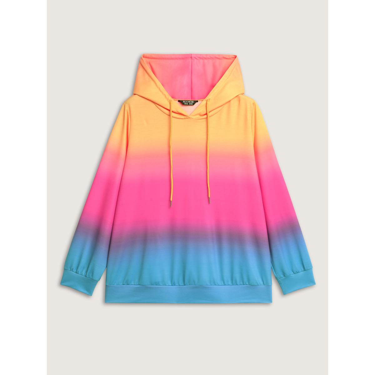 Plus Size Color Gradient Stretchy Hem Hoodie Women Multicolor Playful Non Hooded Casual Sweatshirts BloomChic 28/5X Product Image
