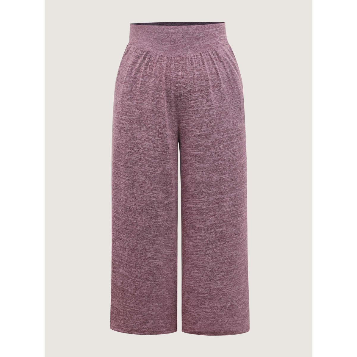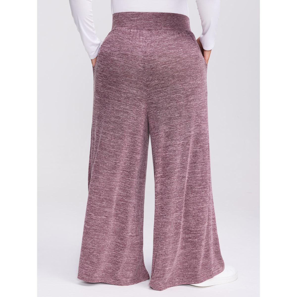 Plus Size Color-Mix Knit Wide Waistband Pants Women Burgundy Leisure Loose Mid Rise Casual Pants BloomChic 12/L