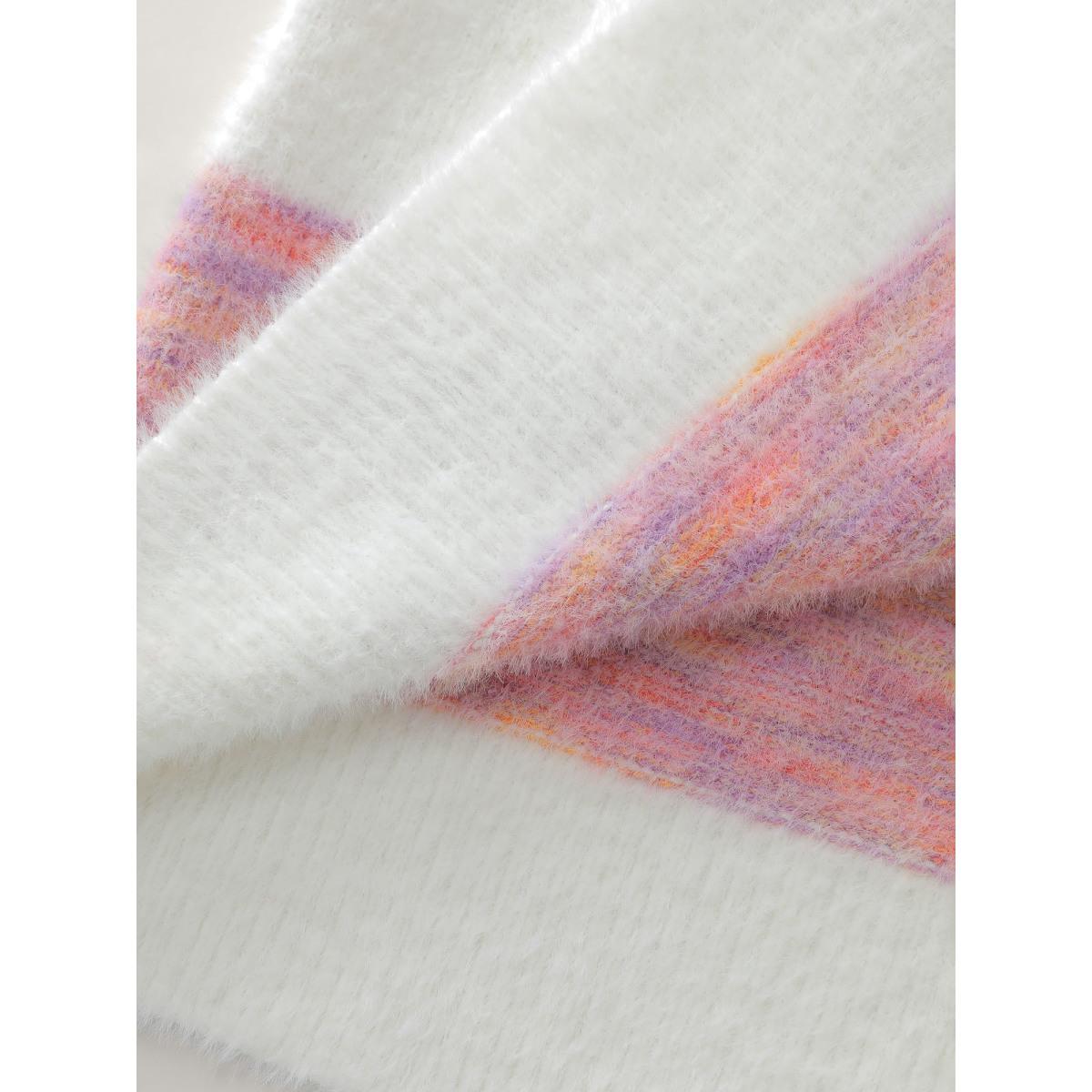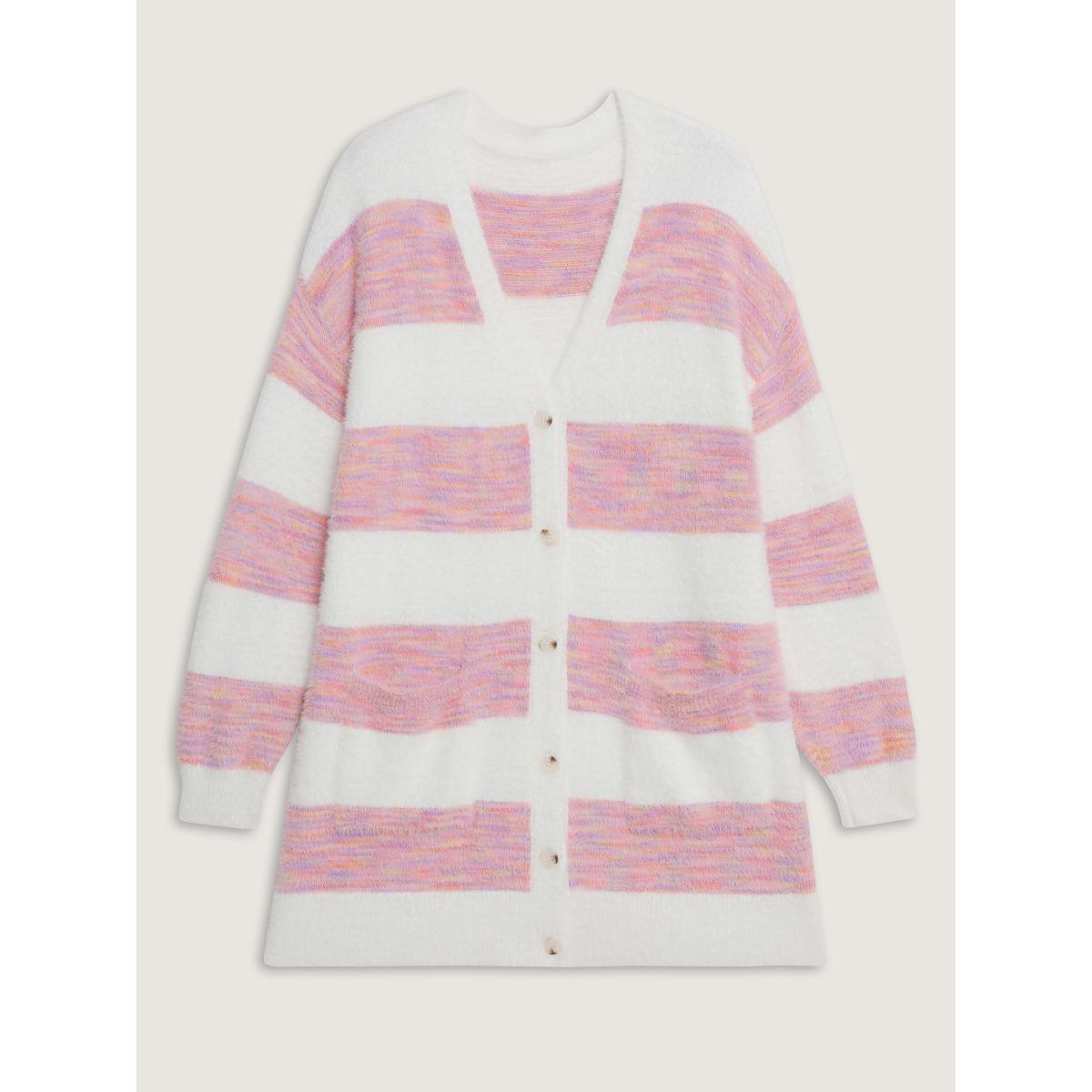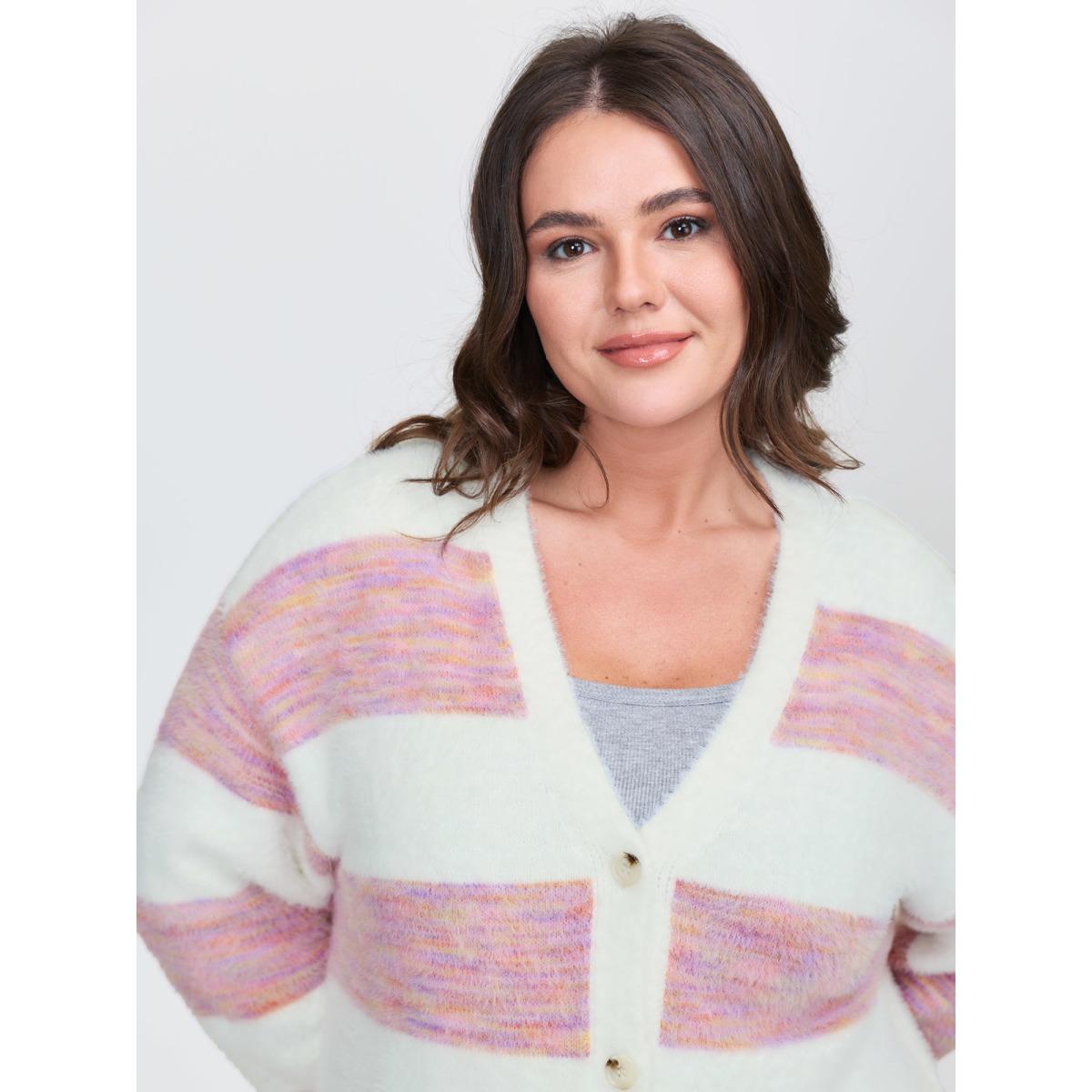 Plus Size Color Stripes Furry Textured Knit Cardigan Lilac Women Leisure Loose Long Sleeve Casual Cardigans BloomChic 18-20/2X