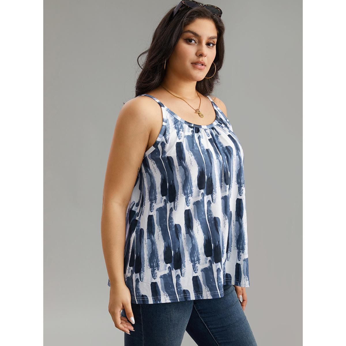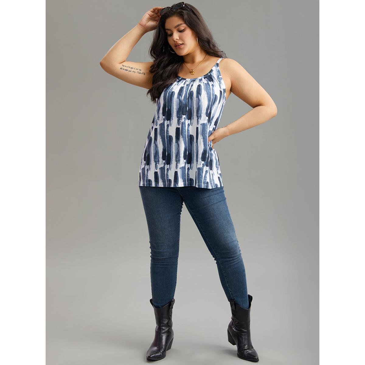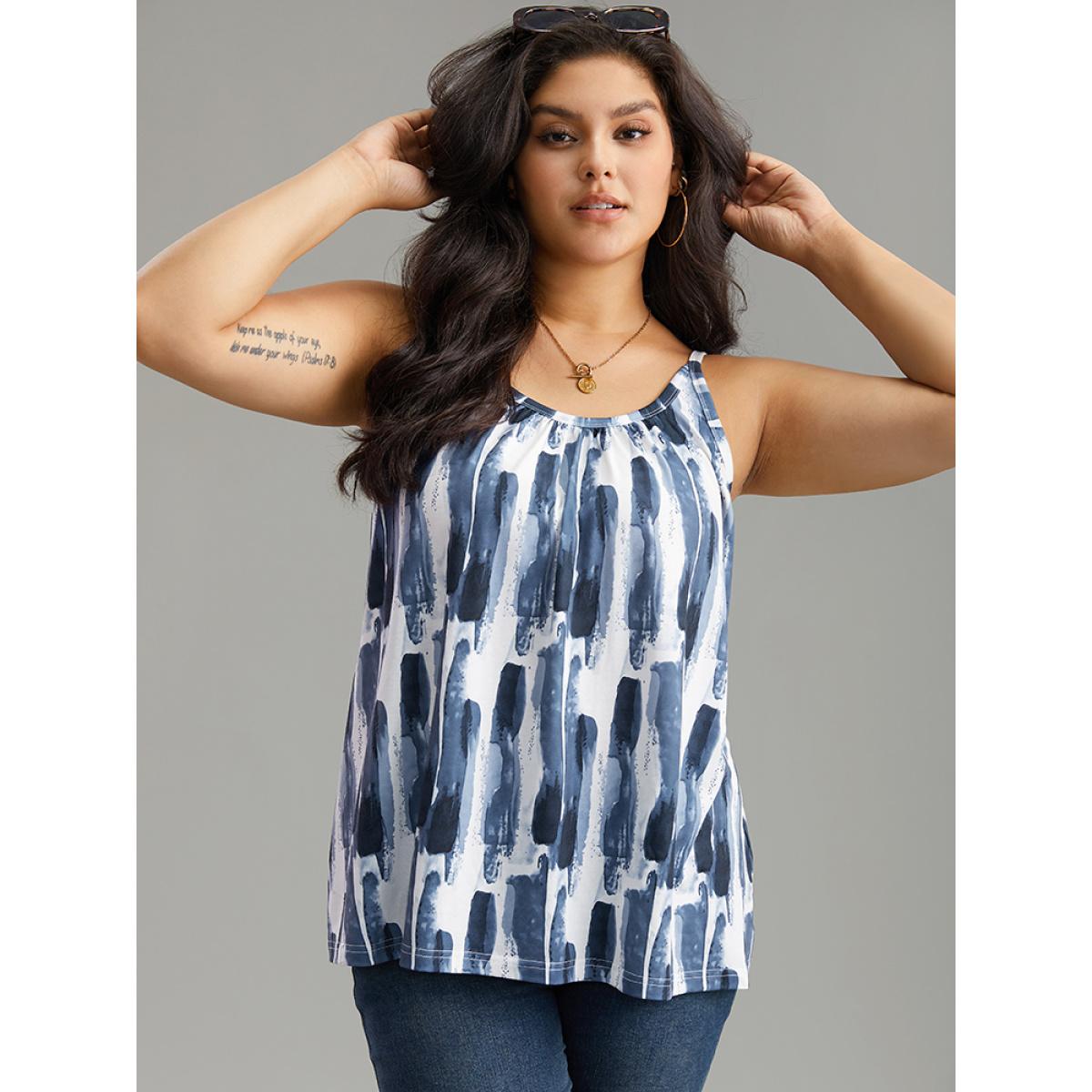 Plus Size Colorblock Brush Print Cami Top Women Multicolor Casual Printed Spaghetti Strap Everyday Tank Tops Camis BloomChic 14-16/1X