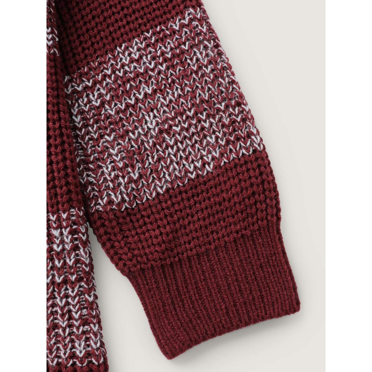 Plus Size Colorblock Contrast Pointelle Knit Button Front Heather Cardigan RedViolet Women Casual Loose Long Sleeve Dailywear Cardigans BloomChic 28/5X