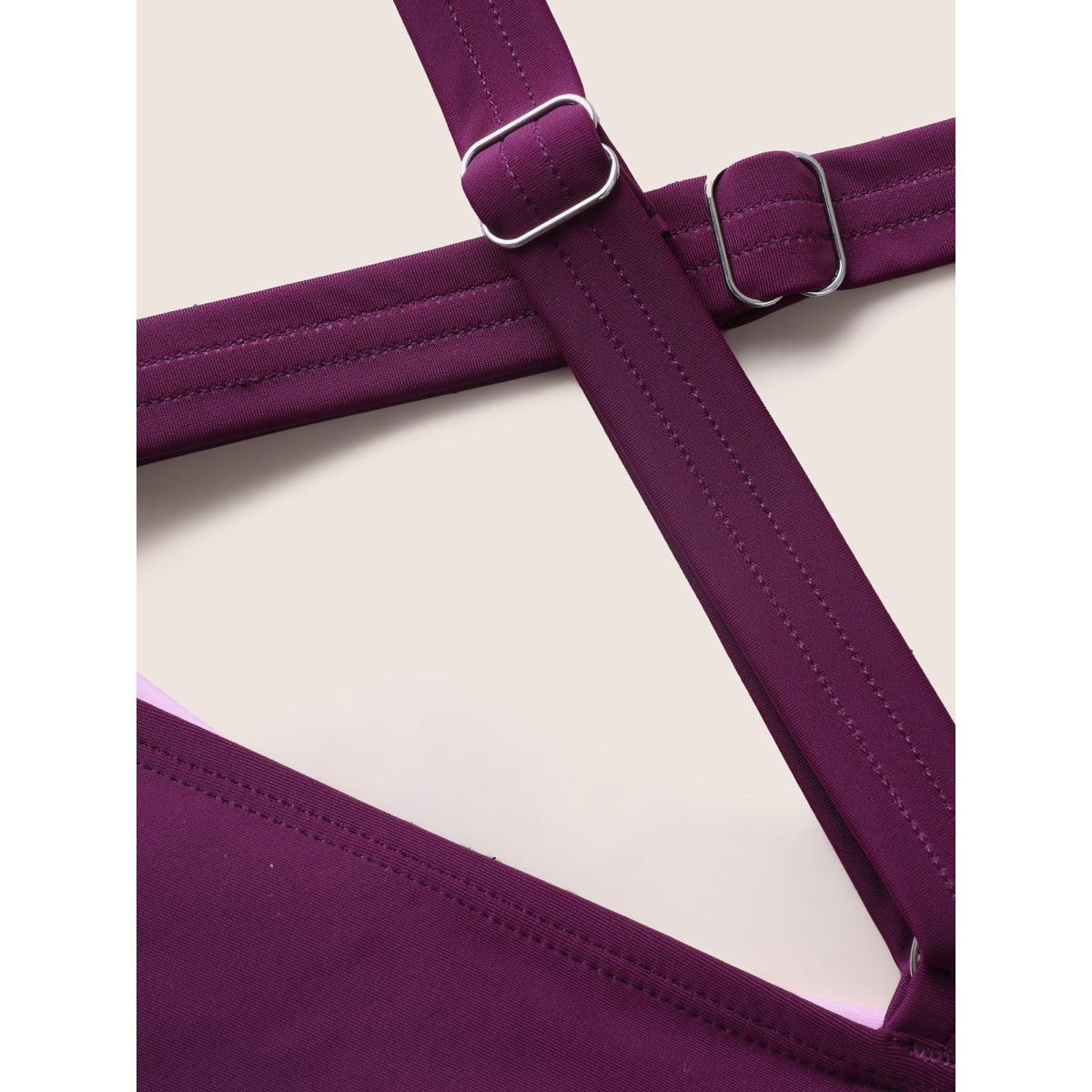 Plus Size Colorblock Contrast Heart Neckline Drawstring One Piece Swimsuit Women's Swimwear Eggplant Beach Gathered Curve Bathing Suits High stretch One Pieces BloomChic 14-16/1X