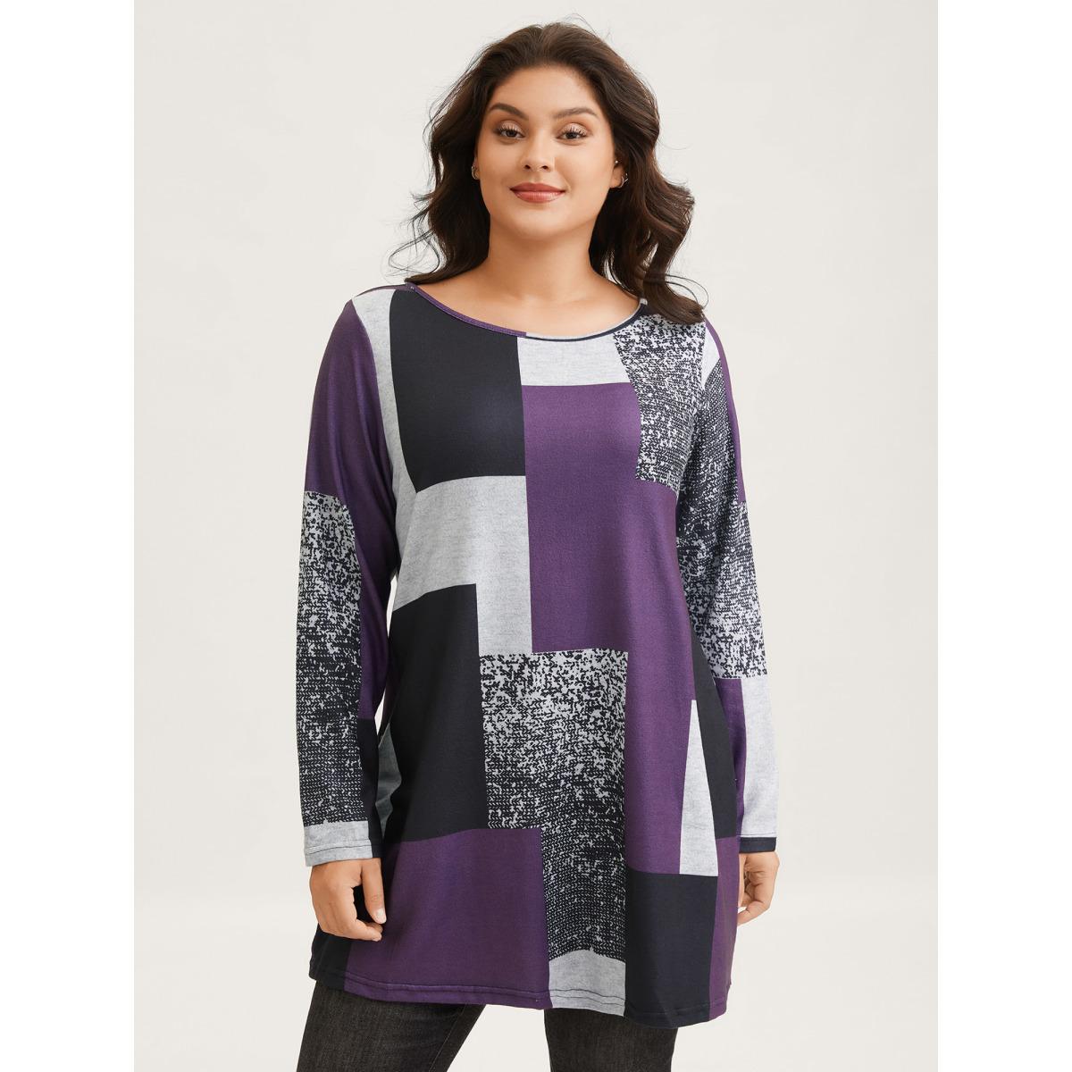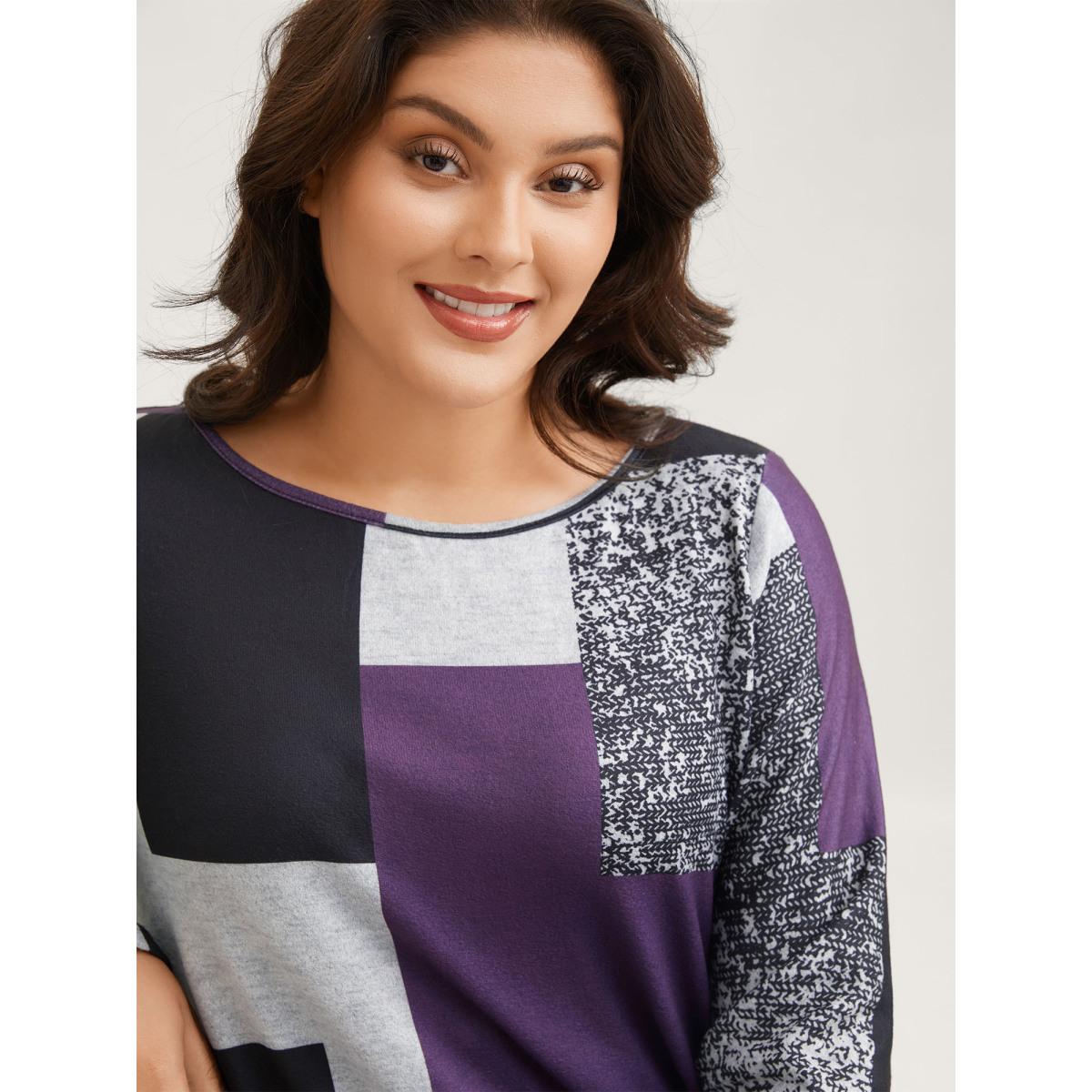 Plus Size Colorblock Contrast Round Neck T-shirt Eggplant Women Leisure Contrast Boat Neck Casual T-shirts BloomChic 12/L