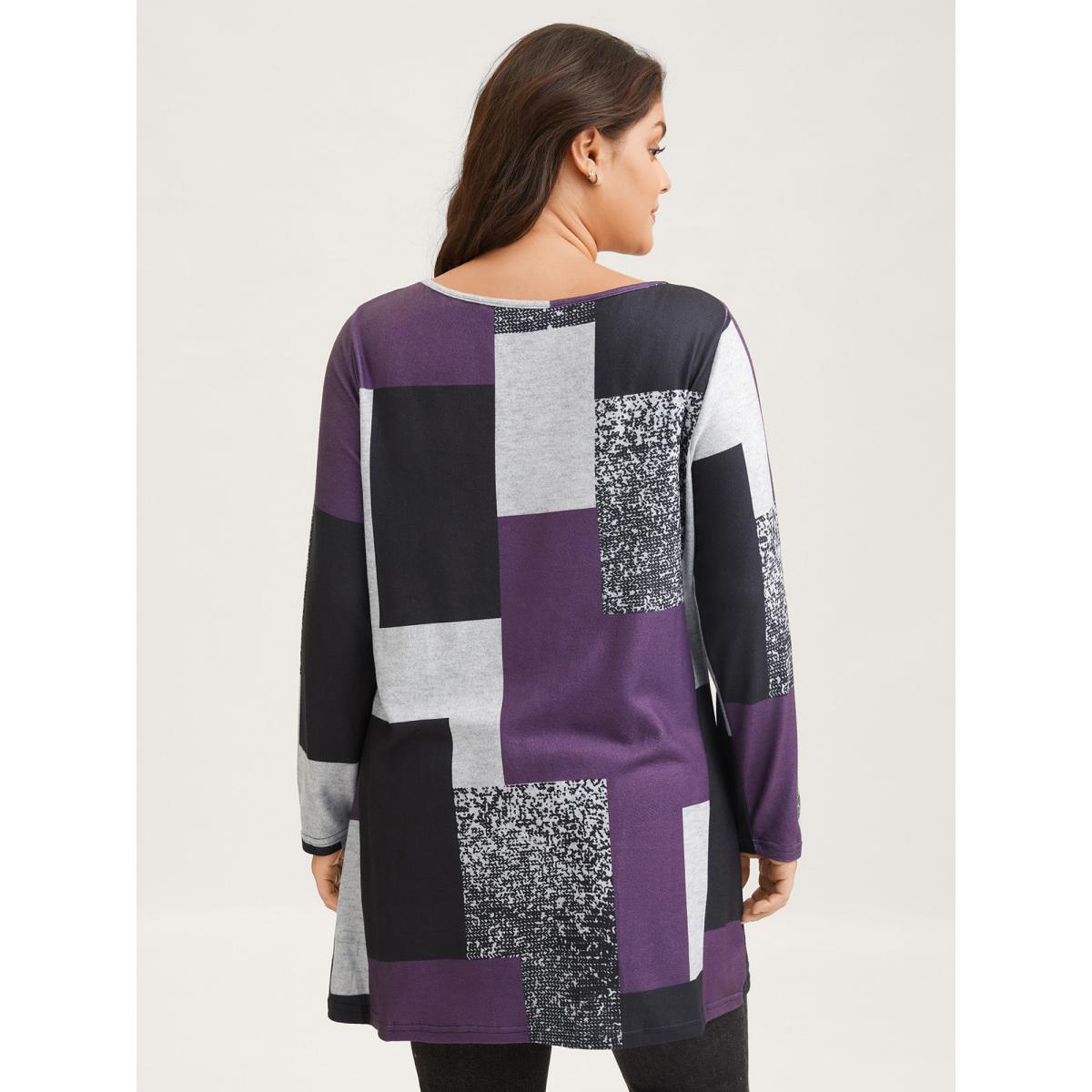 Plus Size Colorblock Contrast Round Neck T-shirt Eggplant Women Leisure Contrast Boat Neck Casual T-shirts BloomChic 12/L Product Image