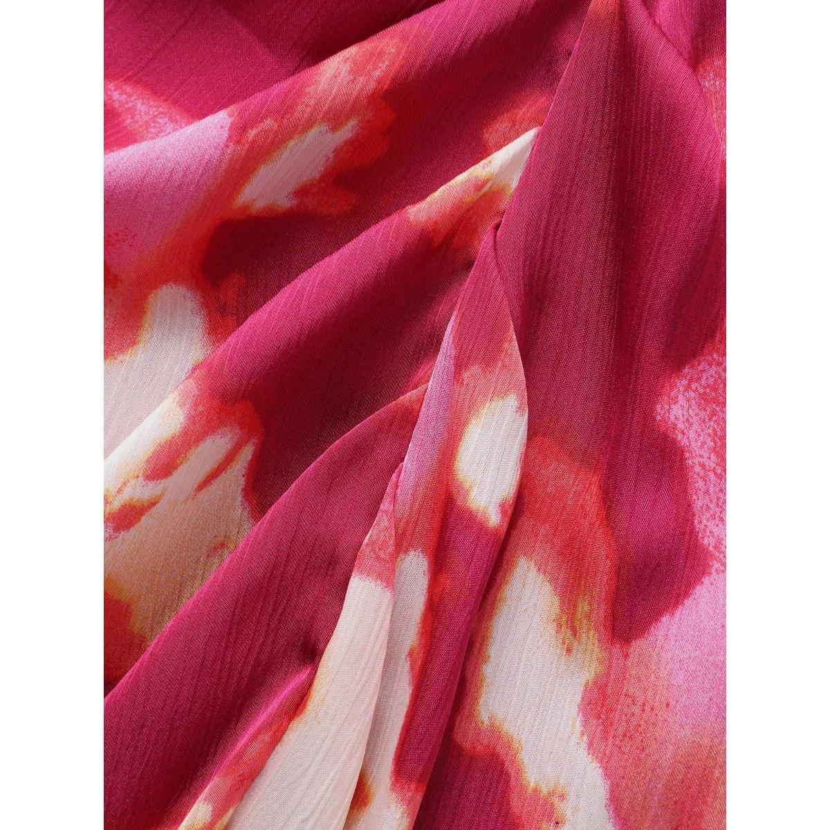 Plus Size Floral Overlap Collar Ruffle Trim Dress RedViolet Women Elegant Gathered Overlap Collar Long Sleeve Curvy BloomChic 10/M