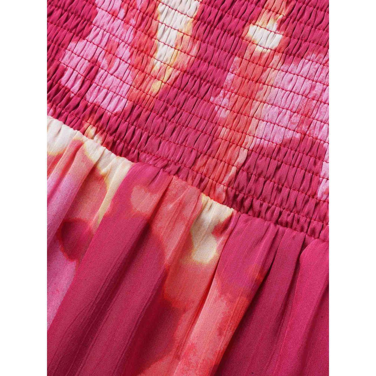 Plus Size Square Neck Shirred Pleated Frill Trim Dress RedViolet Women Elegant Non Square Neck Long Sleeve Curvy Midi Dress BloomChic 14-16/1X