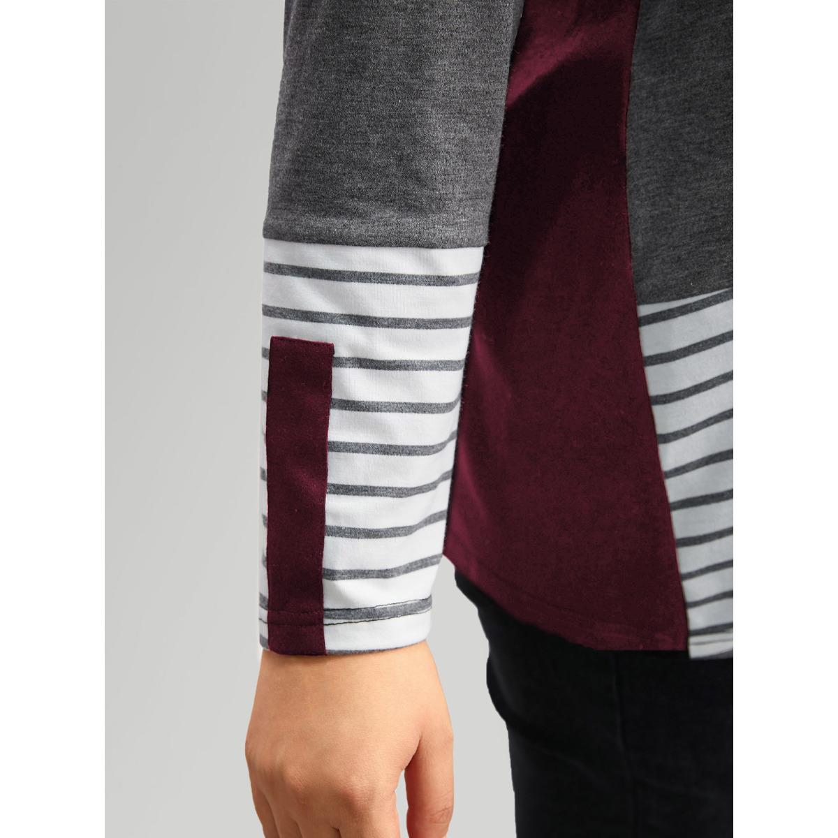 Plus Size Colorblock Contrast Striped V Neck T-shirt Burgundy Women Leisure Contrast V-neck Casual T-shirts BloomChic 10/M