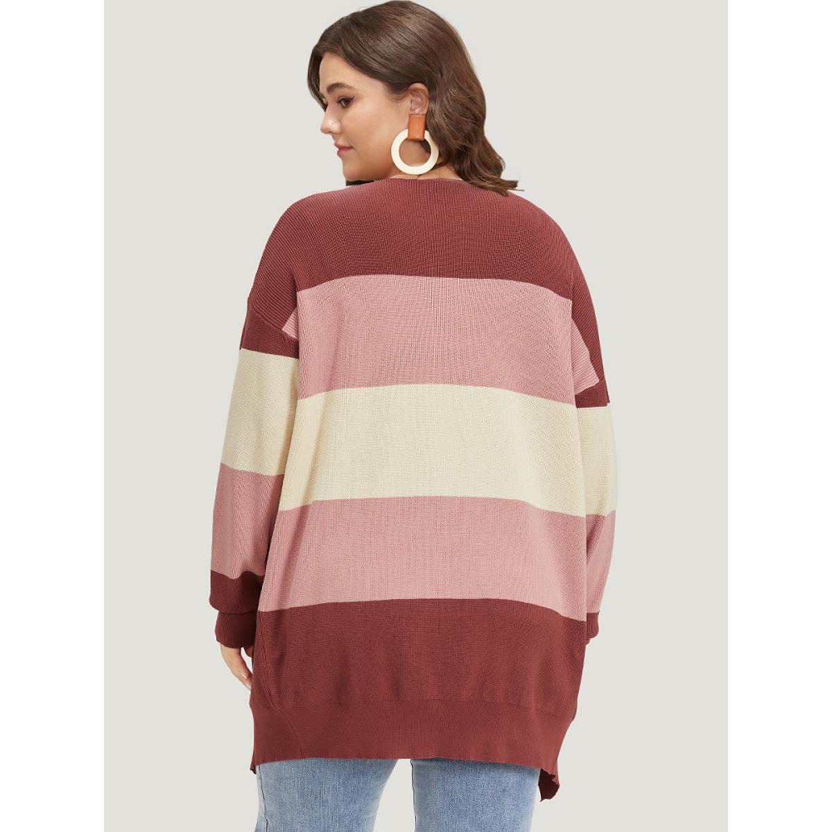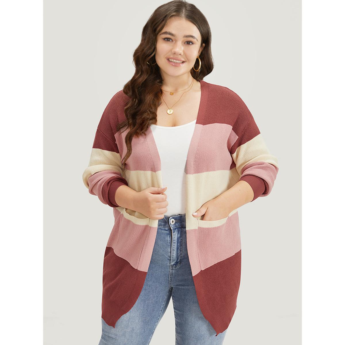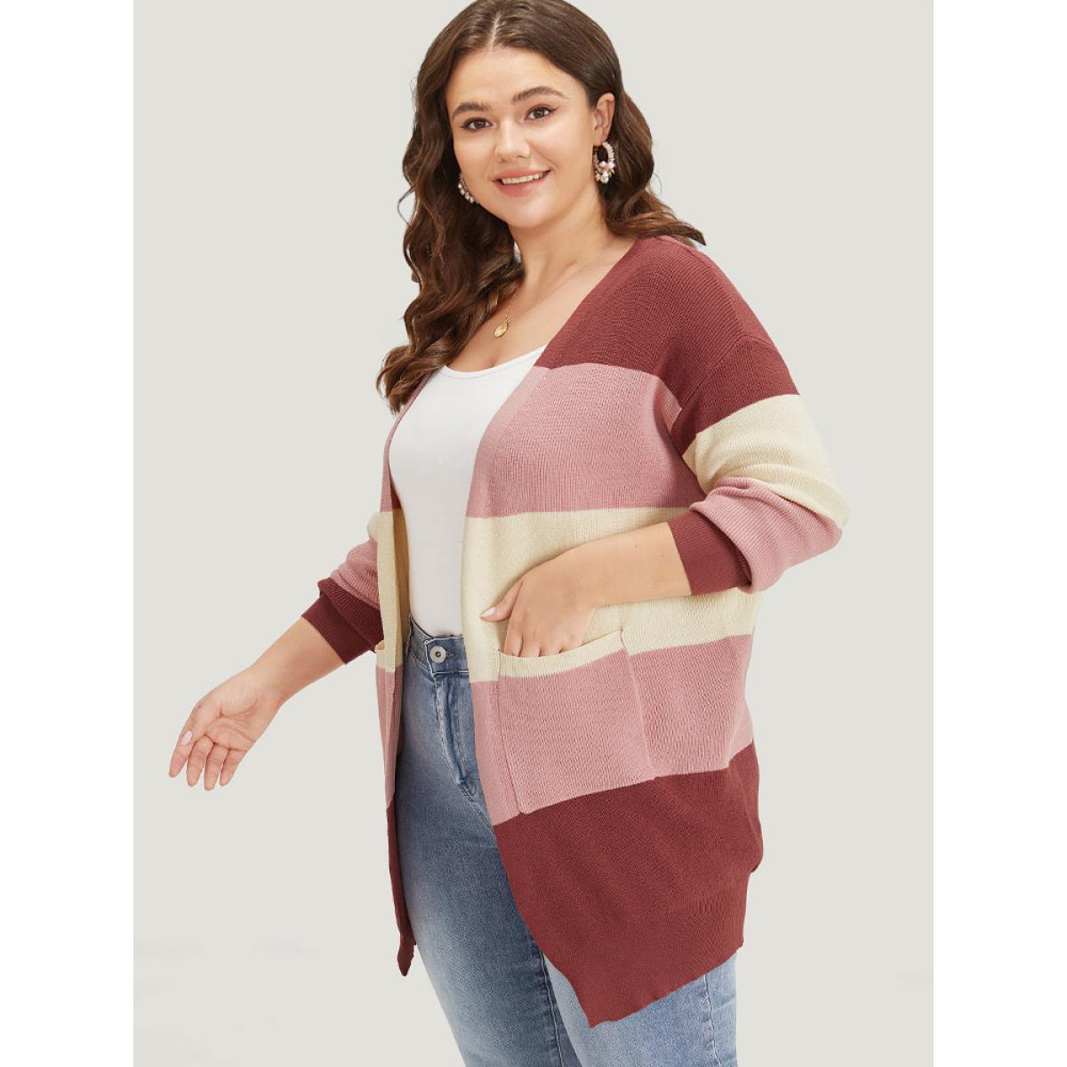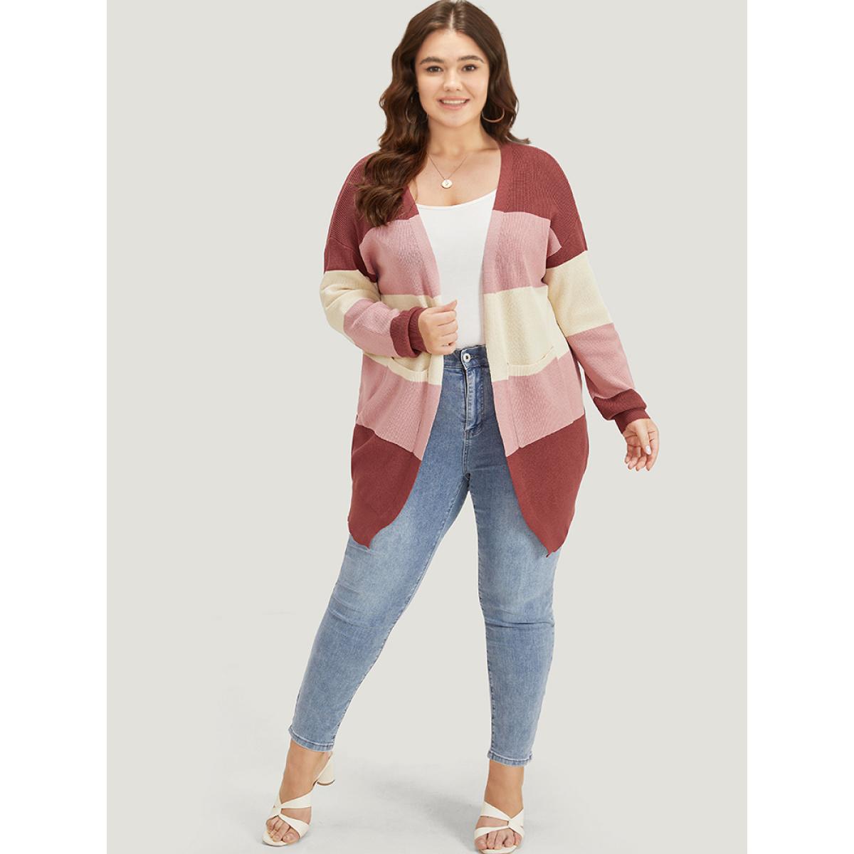 Plus Size Colorblock Patchwork Patched Pocket Elastic Cuffs Cardigan Russet Women Casual Loose Long Sleeve Everyday Cardigans BloomChic 30/6X