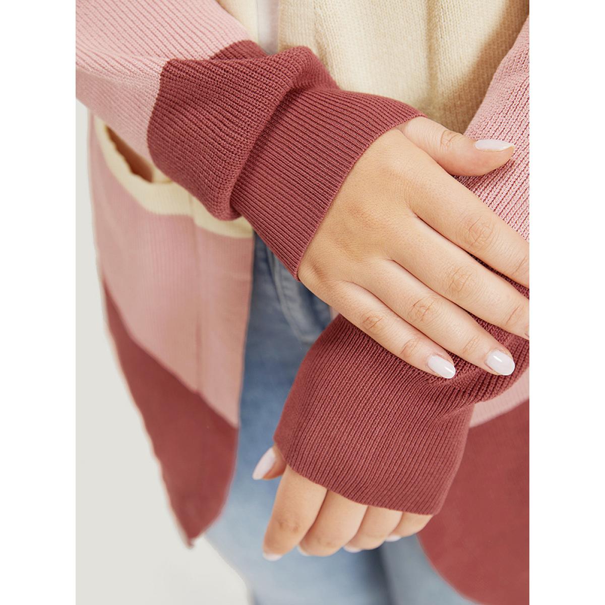 Plus Size Colorblock Patchwork Patched Pocket Elastic Cuffs Cardigan Russet Women Casual Loose Long Sleeve Everyday Cardigans BloomChic 30/6X Product Image
