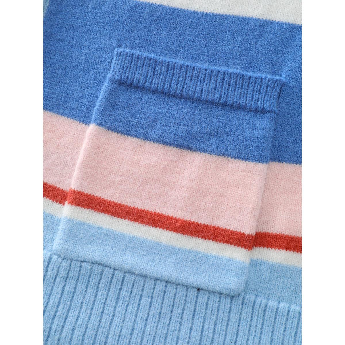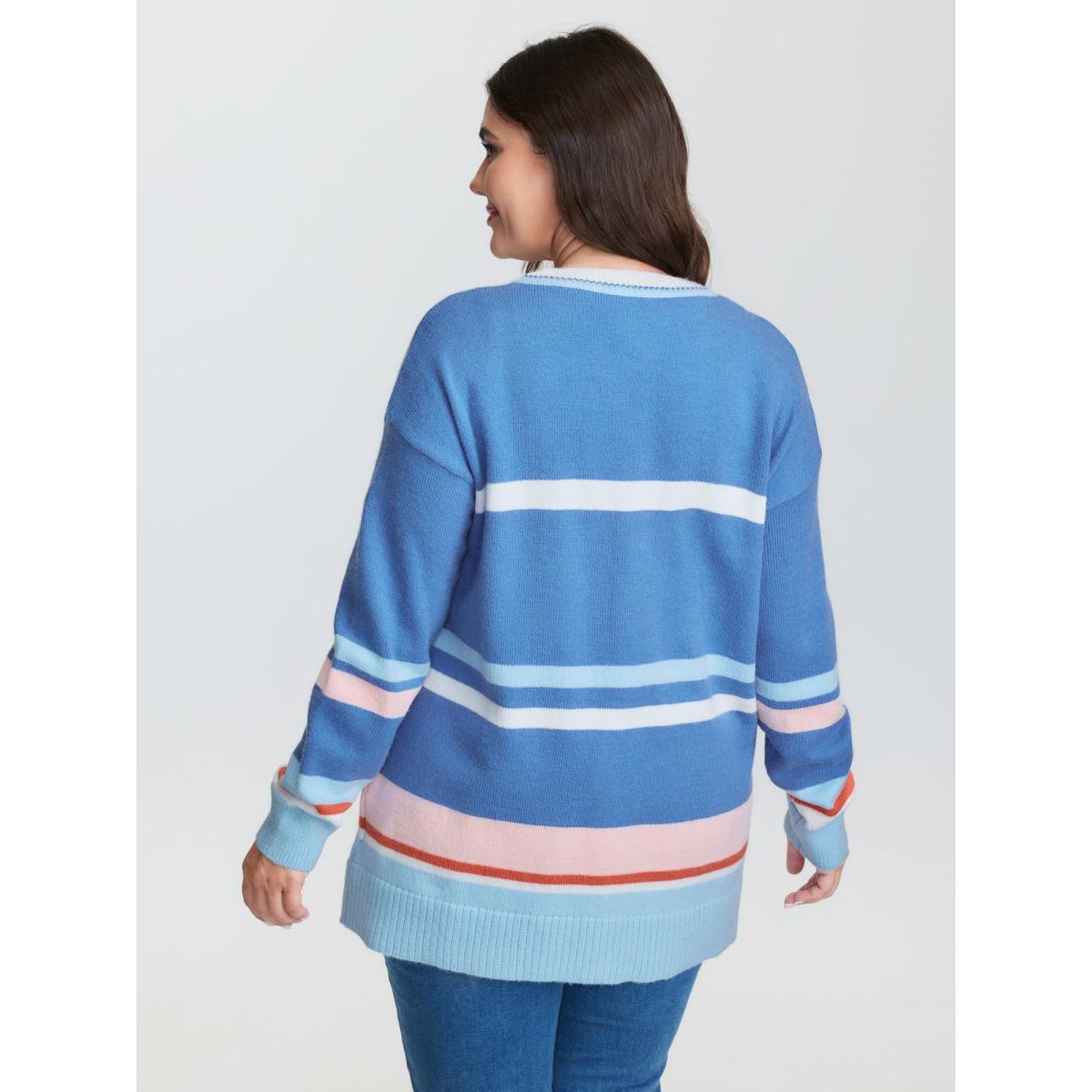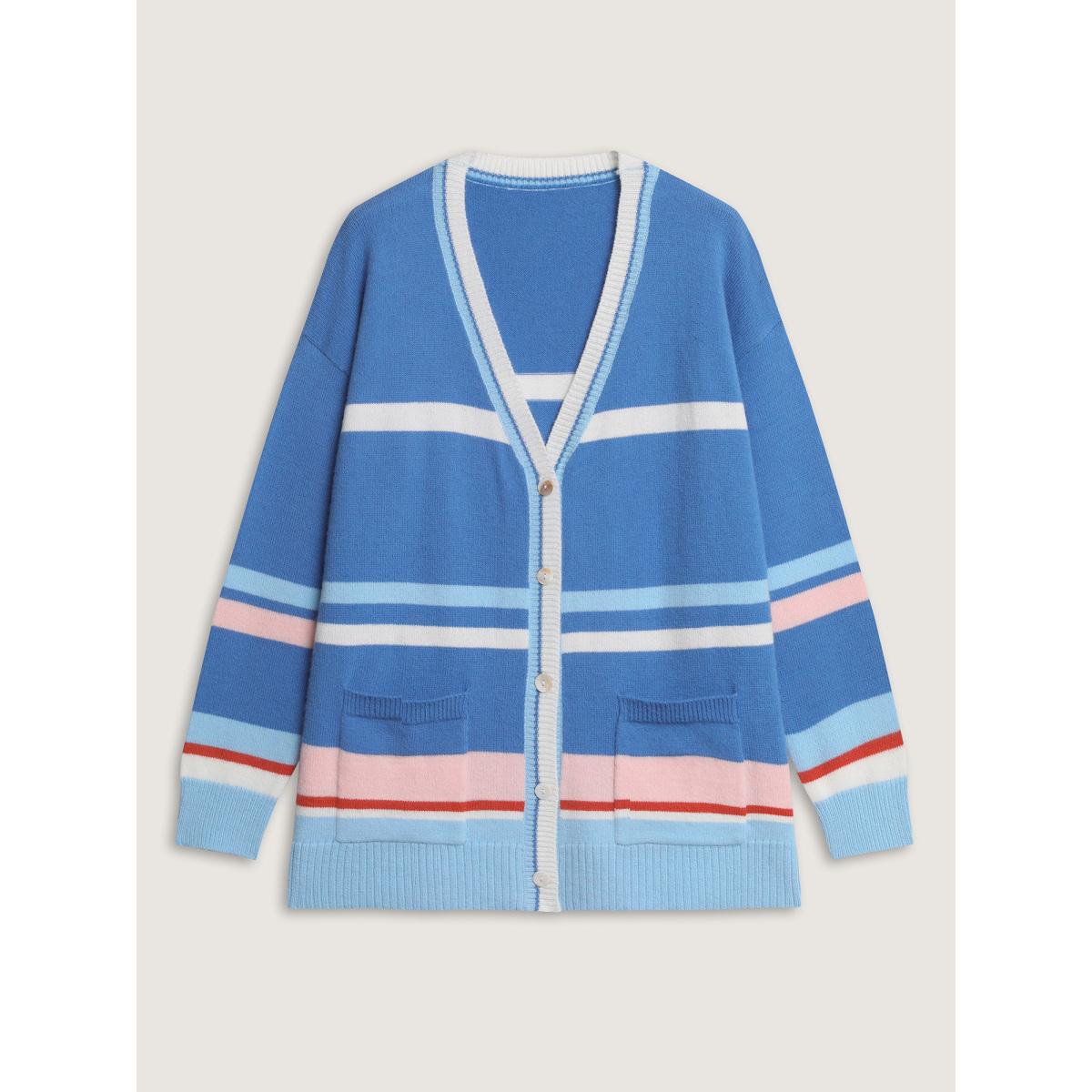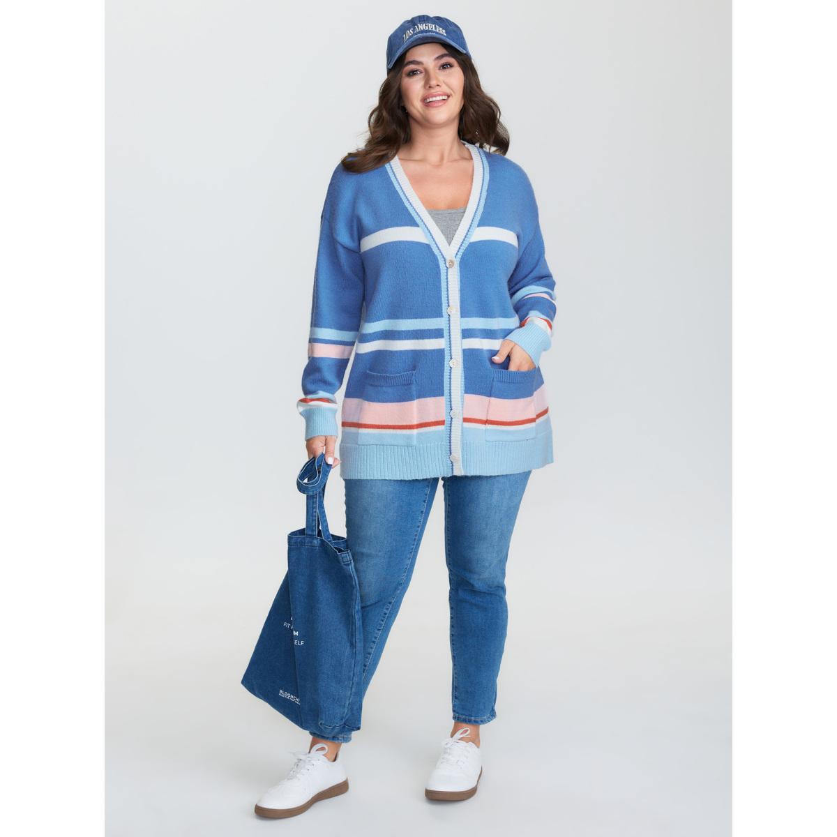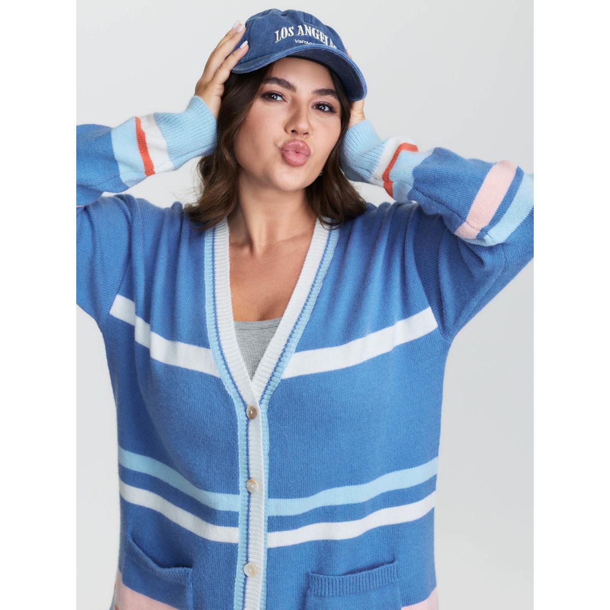 Plus Size Colorblock Super Stretchy Pockets Knit Cardigan Multicolor Women Playful Loose Long Sleeve Casual Cardigans BloomChic 22-24/3X