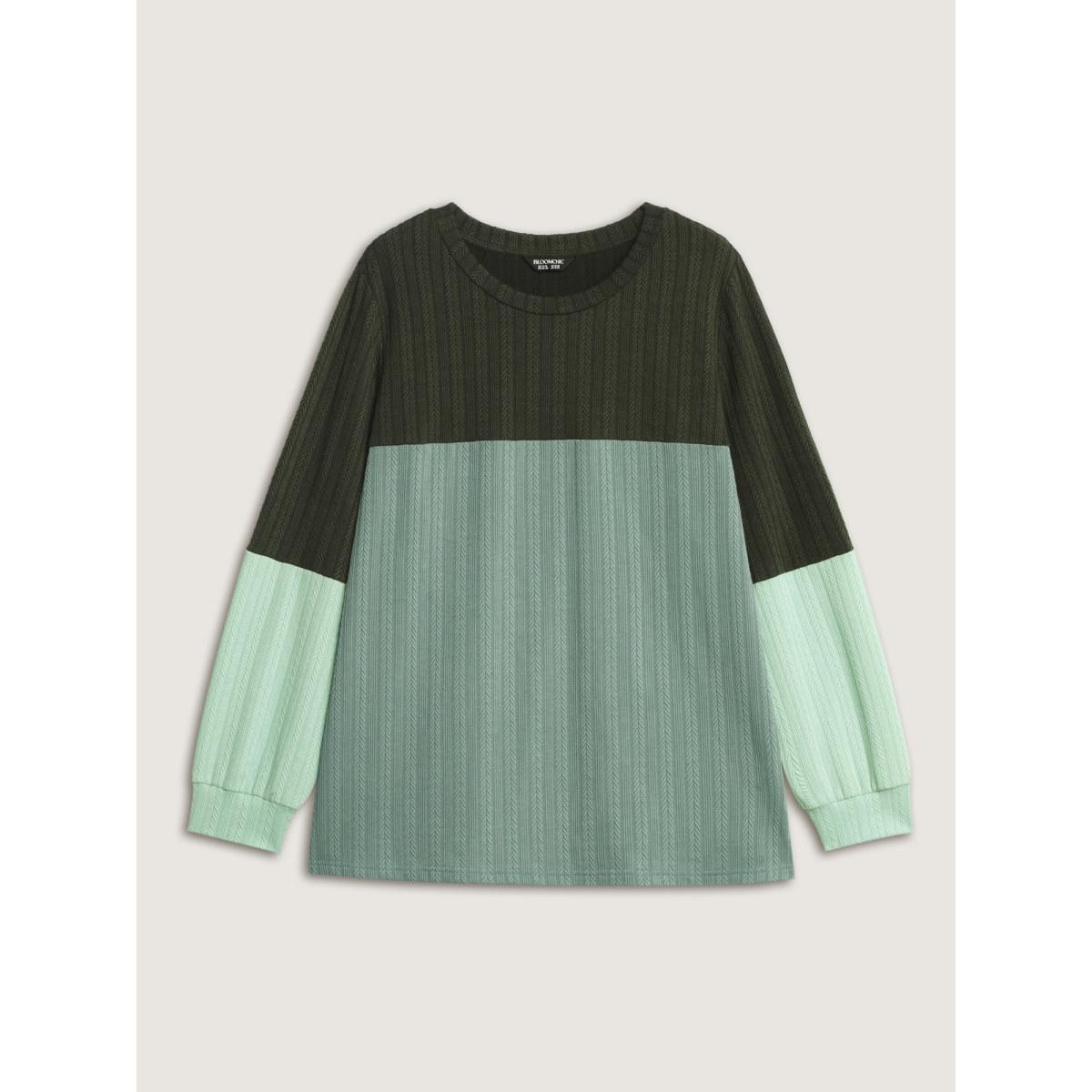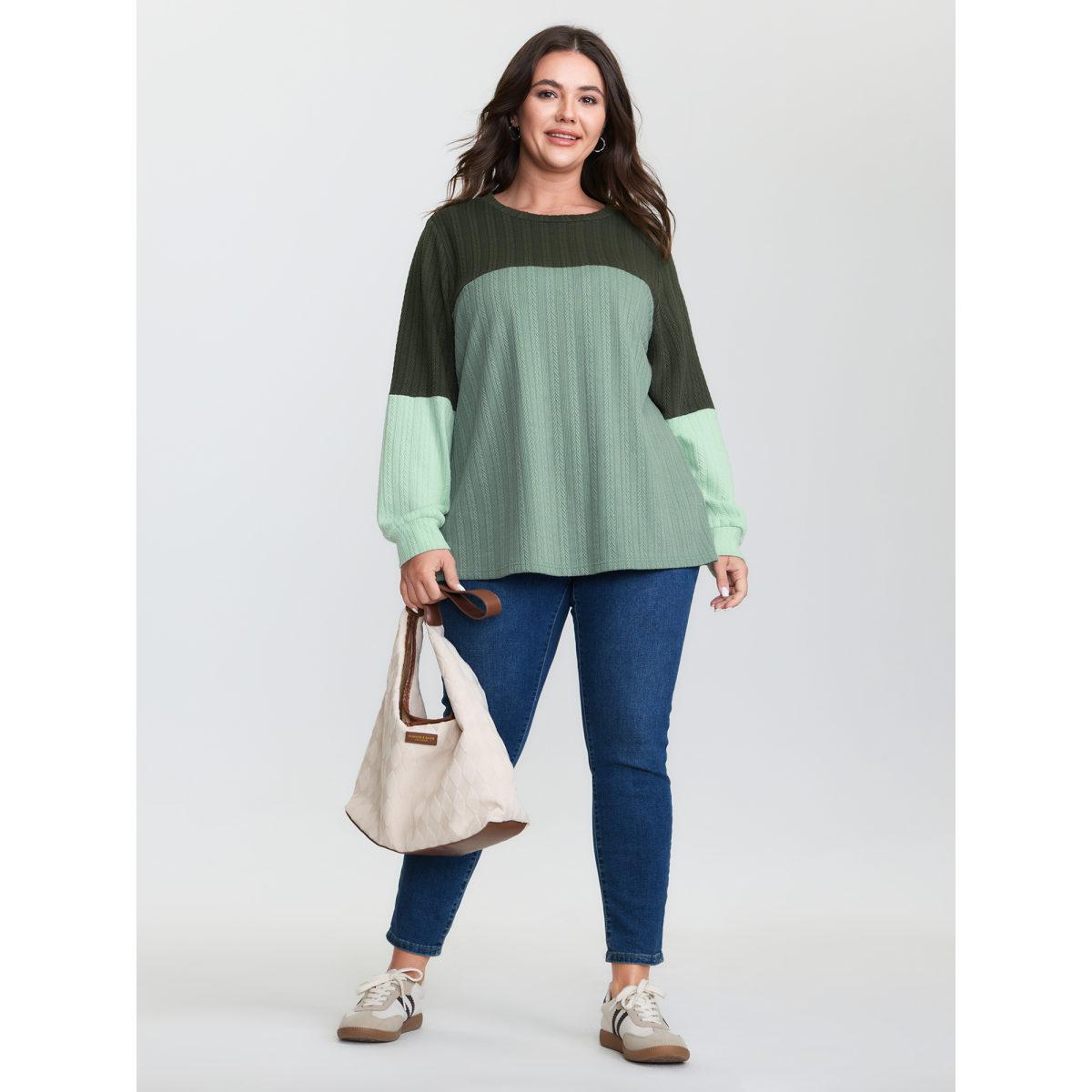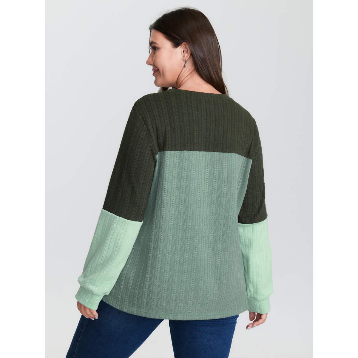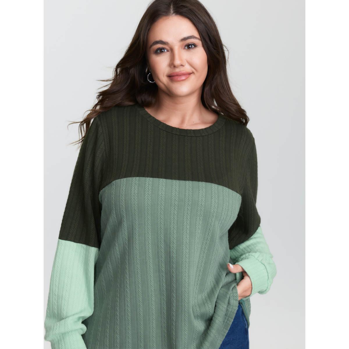 Plus Size Colorblock Textured Round Neck Sweatshirt Women ArmyGreen Leisure Texture Round Neck Casual Sweatshirts BloomChic 26/4X