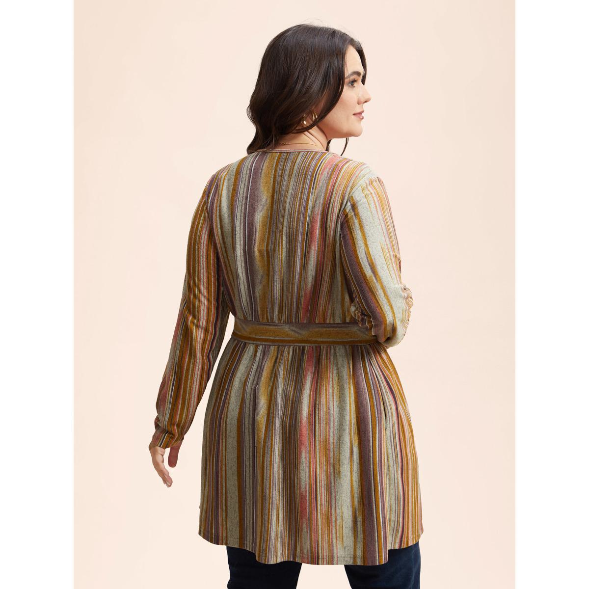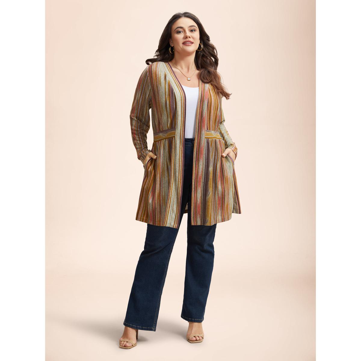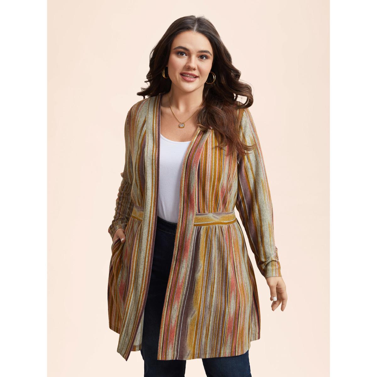 Plus Size Colored Striped Open Front Waist Defining Jacket Women Watermelon Contrast Bodycon Side seam pocket Casual Jackets BloomChic 30/6X