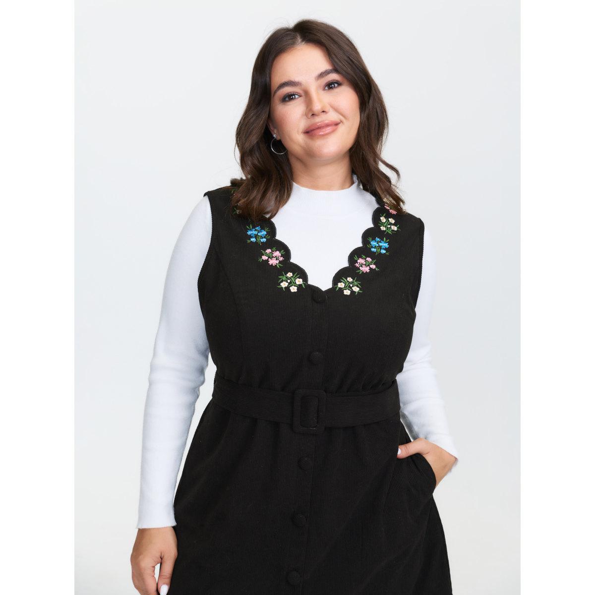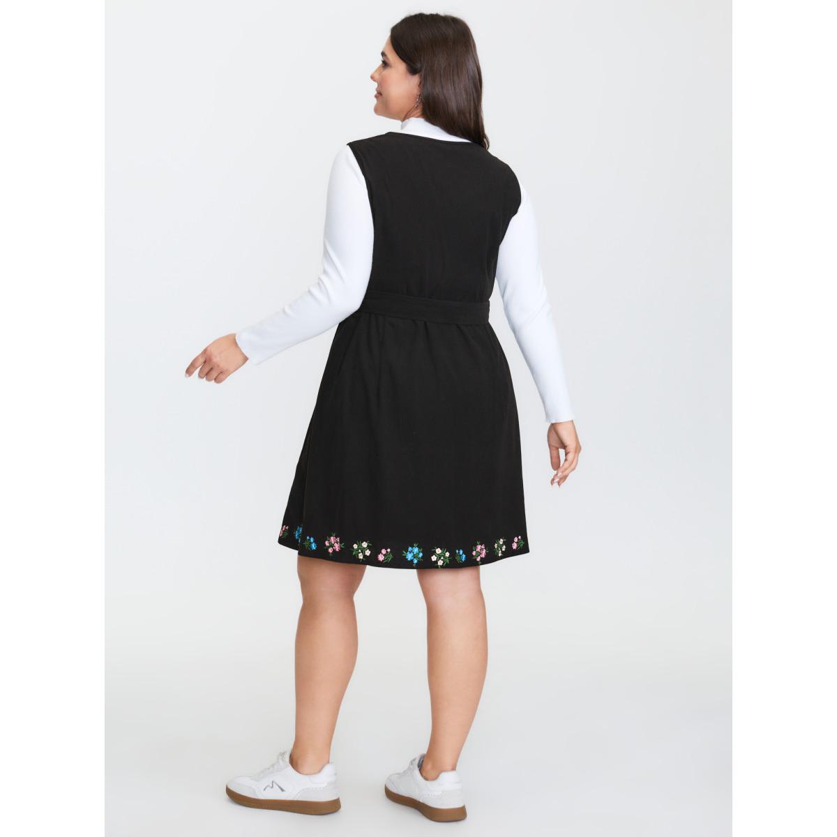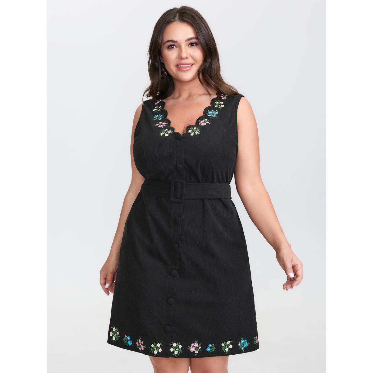 Plus Size Floral Embroidery Belted Midi Dress Black Women Formal Embroidered V-neck Sleeveless Curvy BloomChic 30/6X