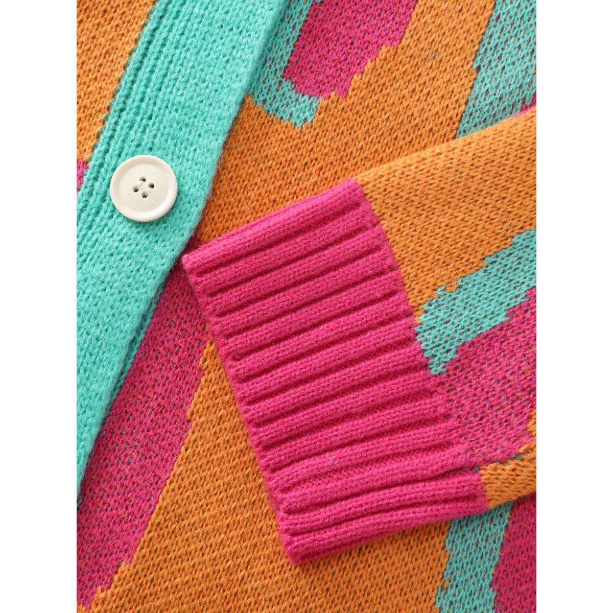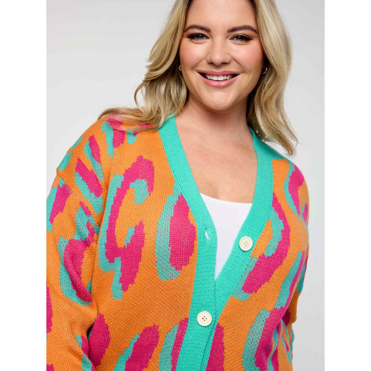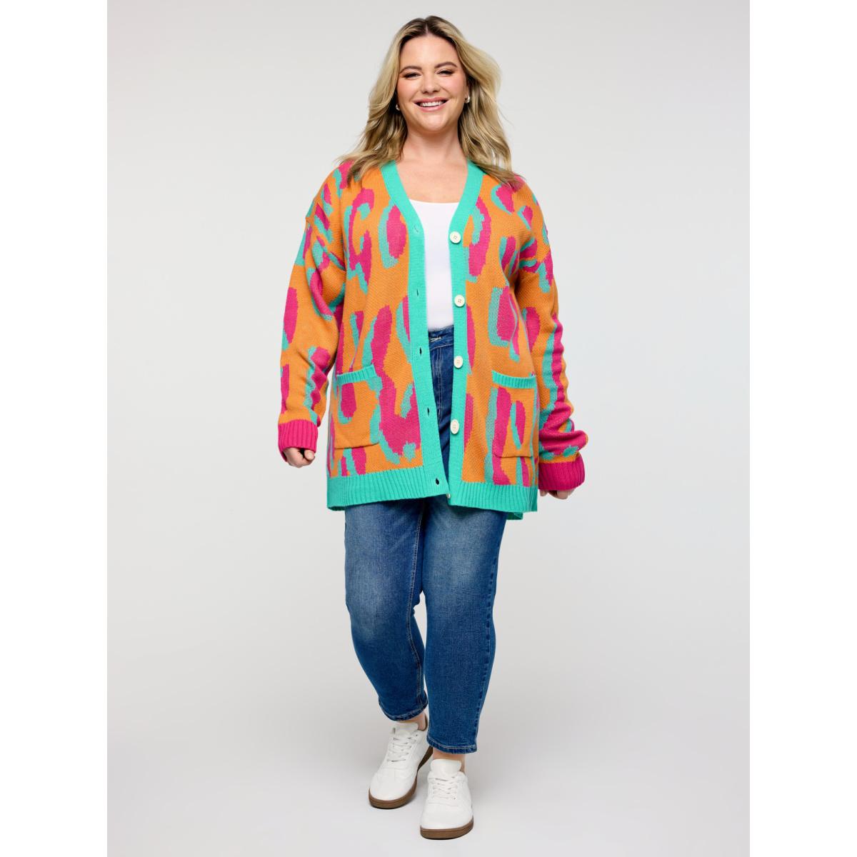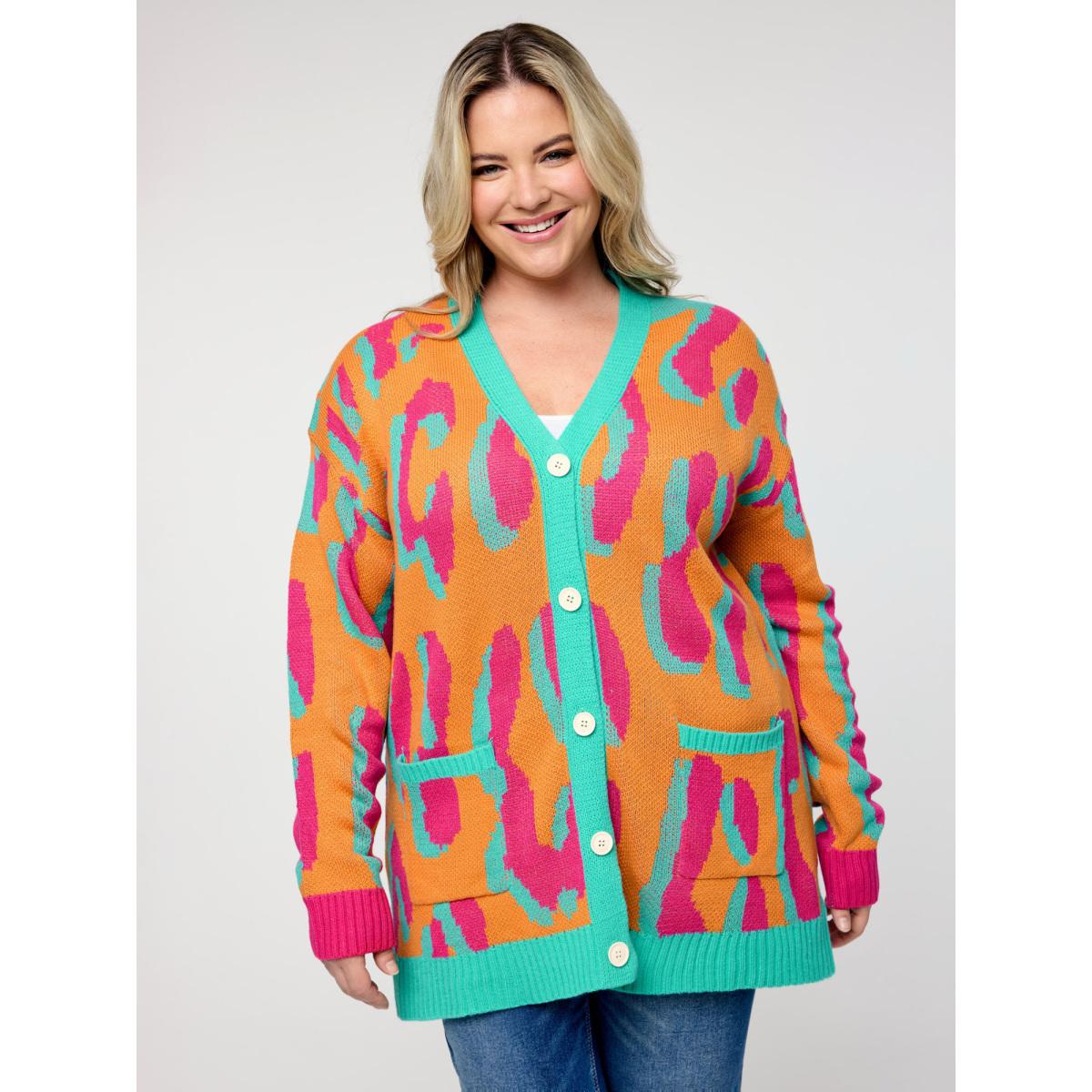 Plus Size Colorful Leopard Button Pockets Knit Cardigan Amber Women Playful Loose Long Sleeve Casual Cardigans BloomChic 26/4X