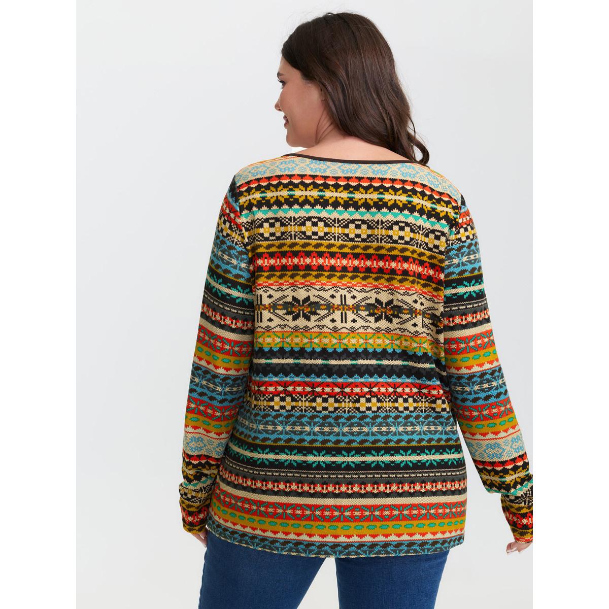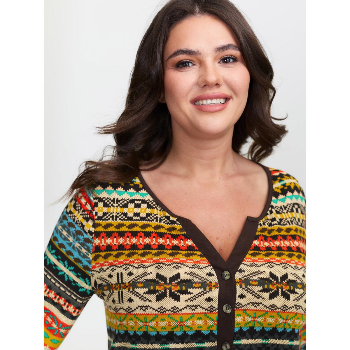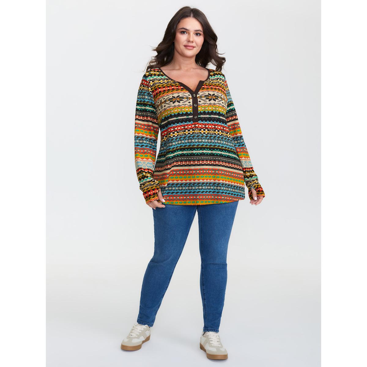 Plus Size Colorful Stripe Button Placket T-Shirt Multicolor Women Leisure Contrast Flat collar with V-notch Casual T-shirts BloomChic 22-24/3X