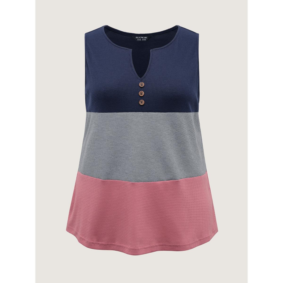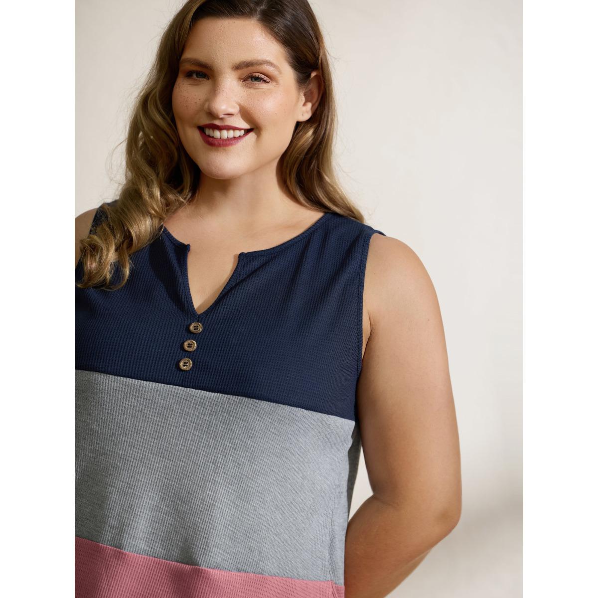 Plus Size Colorful Stripes Textured Button Tank Top Women Multicolor Leisure Flat collar with V-notch Casual Tank Tops Camis BloomChic 18-20/2X