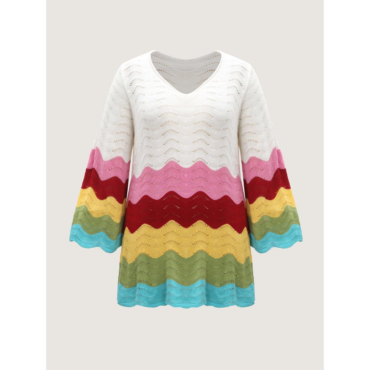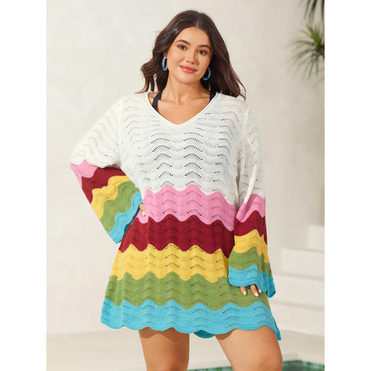 Plus Size Colorful Waves Cut-Out Swim Cover-Up Women's Swimwear Ivory Resort Oversized Texture Curve Swim Cover Ups BloomChic 28/5X