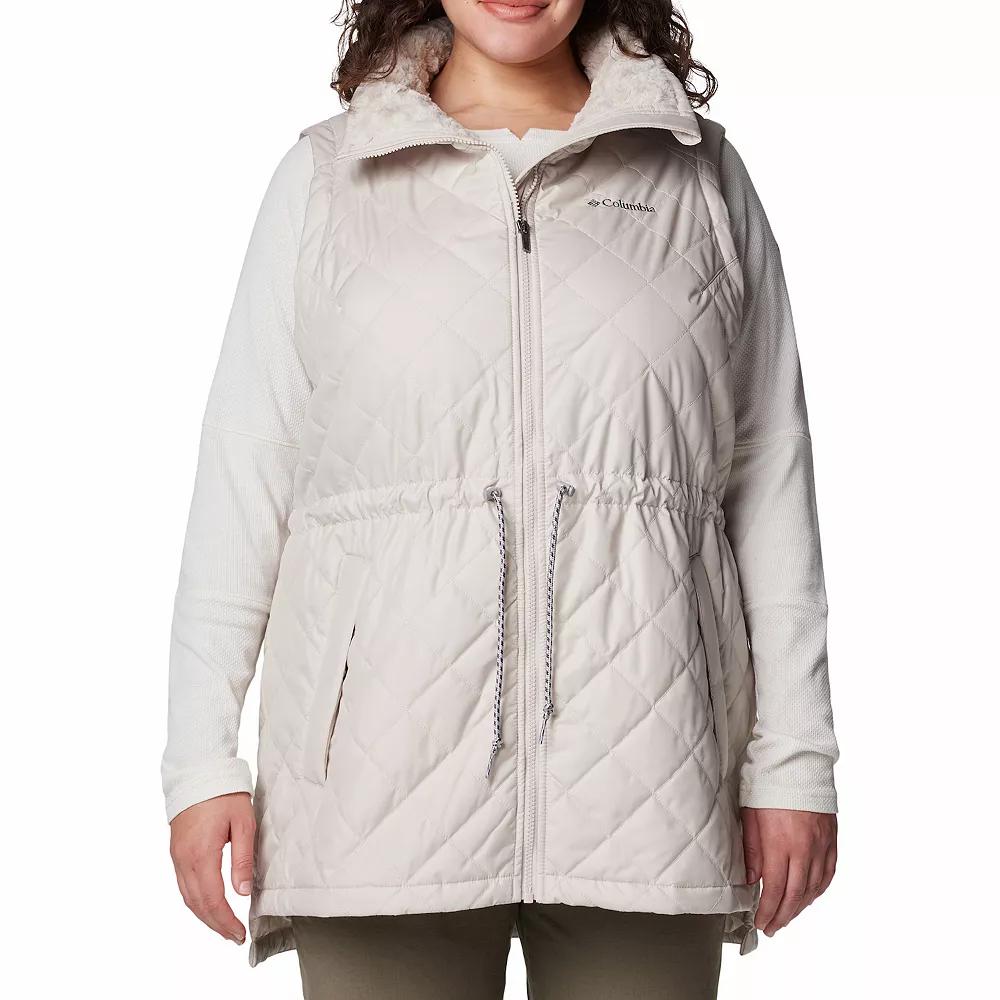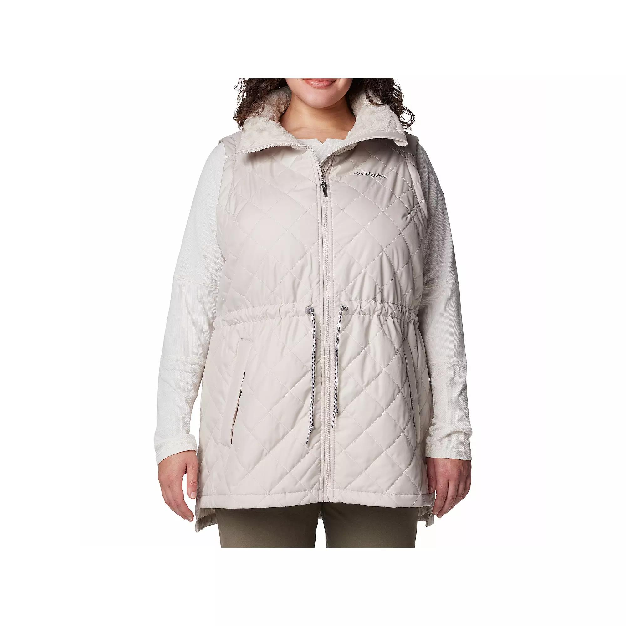 Bundle up and look great doing it with this Womens Columbia Copper Crest II Mid Vest!Click on this WOMENS GUIDE to find the perfect fit and more! FEATURES Omni-SHIELD advanced repellency Insulated, 100gsm Plush fleece lined collar Chin guard Drawcord adjustable waist Hand pockets with snap closure Drop tail Partial fleece lining Zipper closure Sleeveless Partially linedFIT & SIZING Classic fit 34-in. length from shoulder to hem Designed to hit just below the waist Functional drawstring waistband MidweightFABRIC & CARE Machine wash Trim: machine wash ImportedRESPONSIBLE Contains recycled polyester Size: 1X. Color: Dark Stone. Gender: female. Age Group: adult.