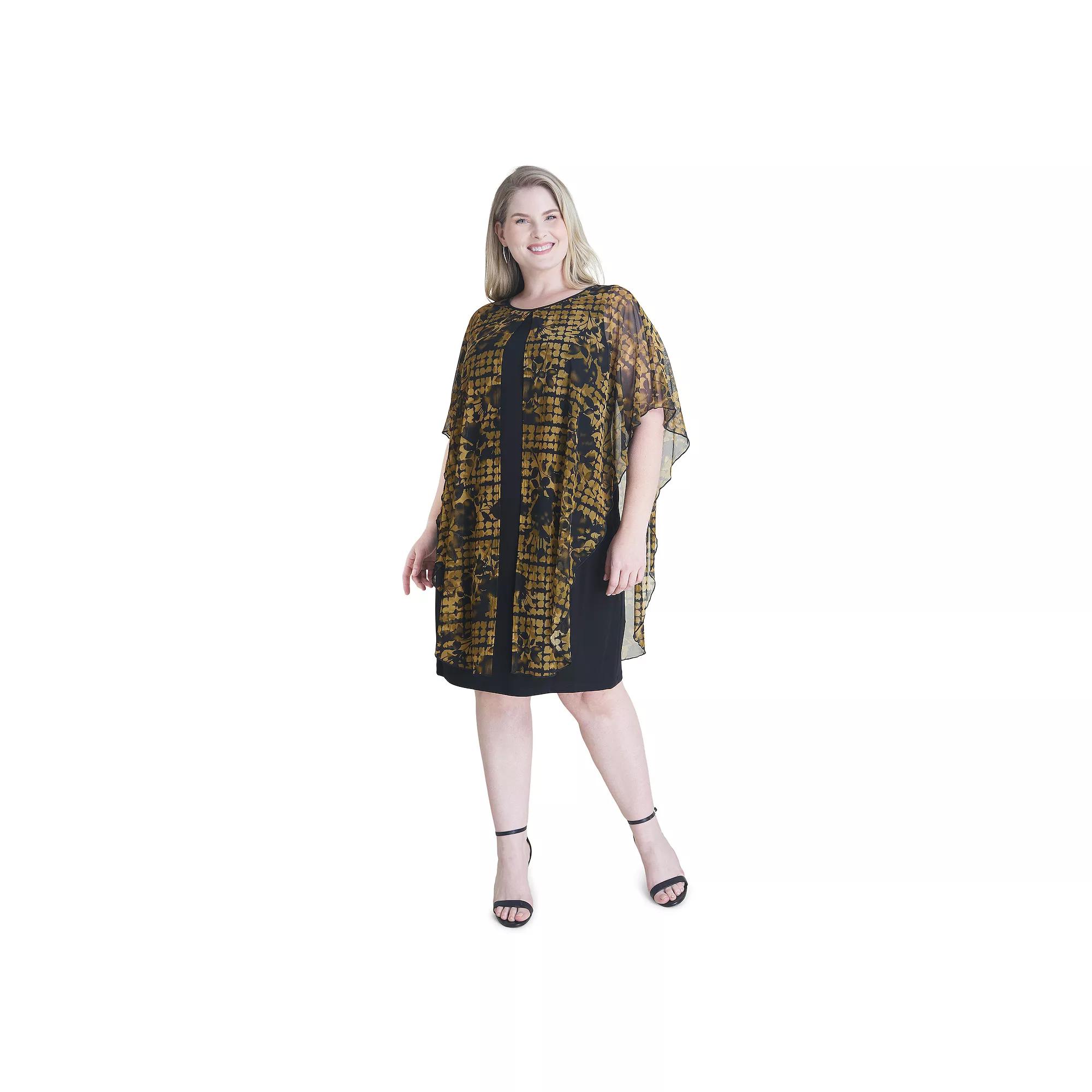 This womens mesh overlay dress from Connected Apparel is stylish and classy, ensuring you stand out from the crowd.Click on this WOMENS GUIDE to find the perfect fit and more! This womens mesh overlay dress from Connected Apparel is stylish and classy, ensuring you stand out from the crowd. Click on this WOMENS GUIDE to find the perfect fit and more! FEATURES Attached mesh overlay poncho with floral print Knit dress Boatneck Short sleevesFIT & SIZING 38 1/2-in. length from shoulder to hem Fitted cut Mini length hits at the thighFABRIC & CARE Polyester, spandex Machine wash and tumble dry low Imported Size: 16 W. Color: Drk Yellow. Gender: female. Age Group: adult.