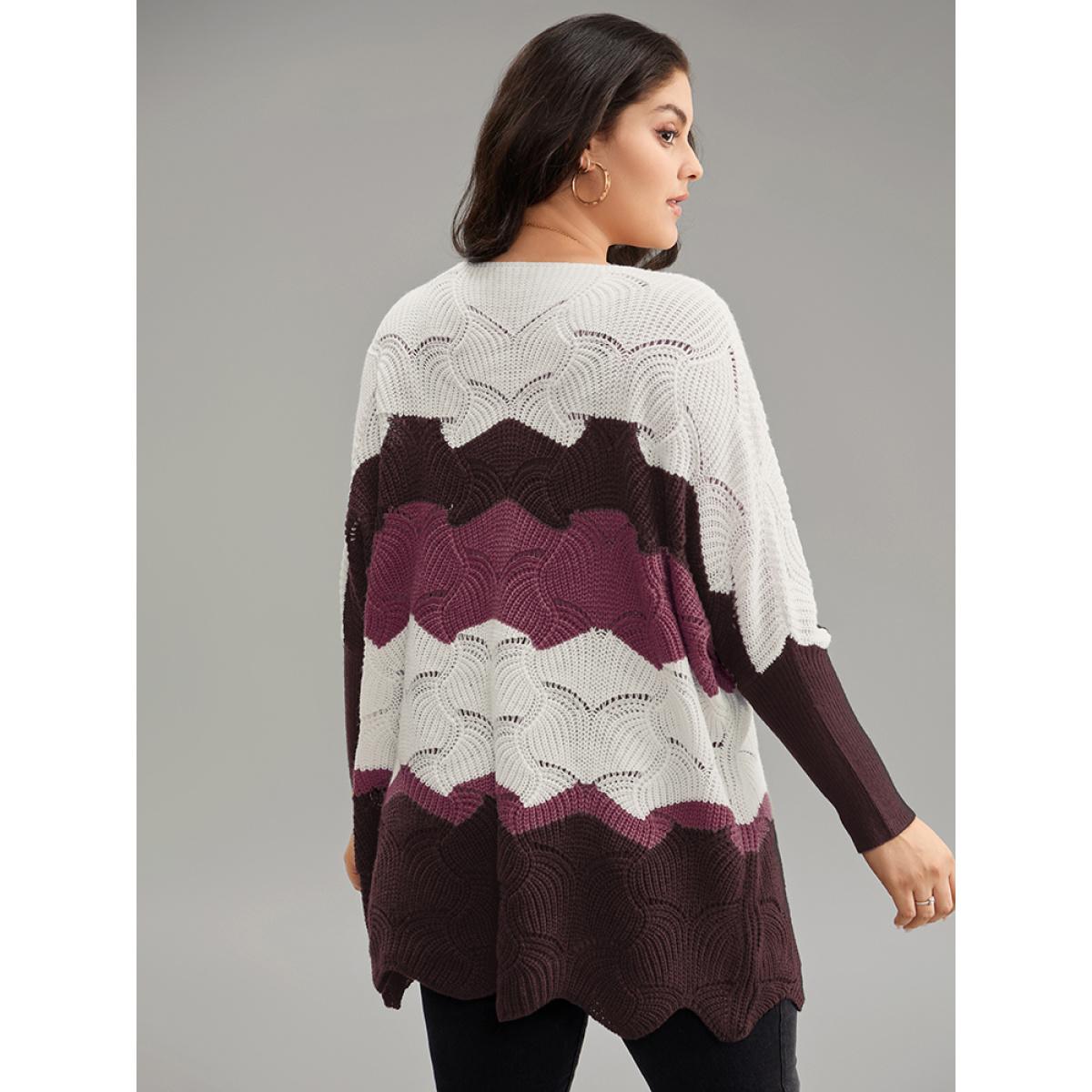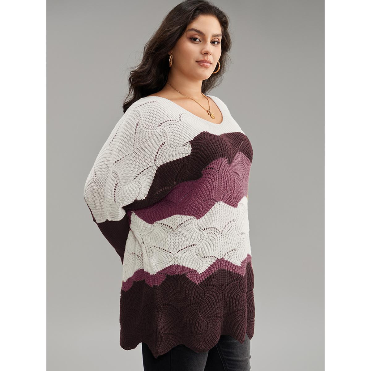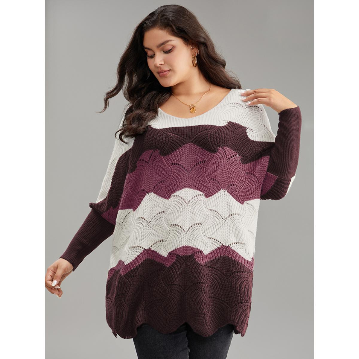 Plus Size Contrast Cut Out Batwing Sleeve Pullover RedViolet Women Casual Loose Long Sleeve V-neck Everyday Pullovers BloomChic 14-16/1X