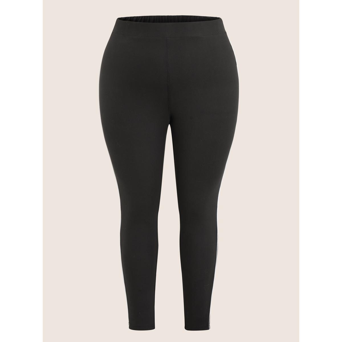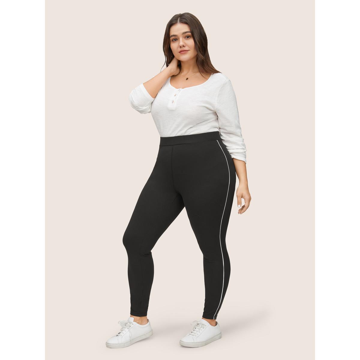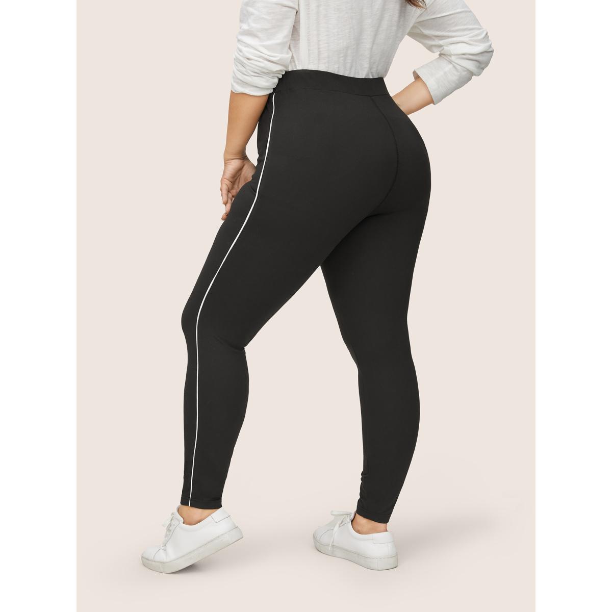 Plus Size Contrast Seam Detail High Rise Leggings Women Black Casual High stretch Skinny High Rise Everyday Leggings BloomChic 22-24/3X