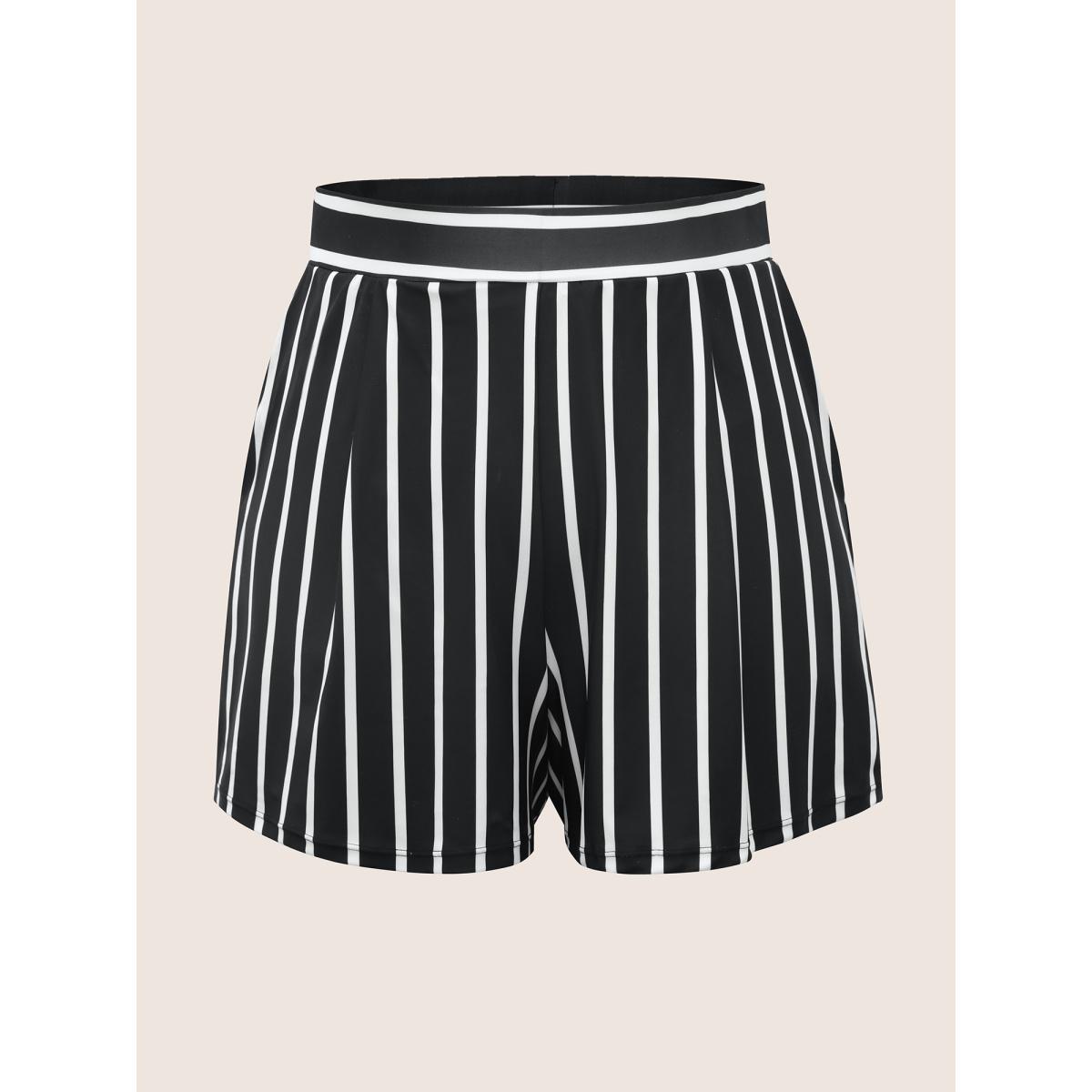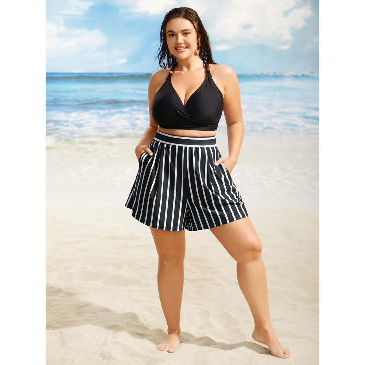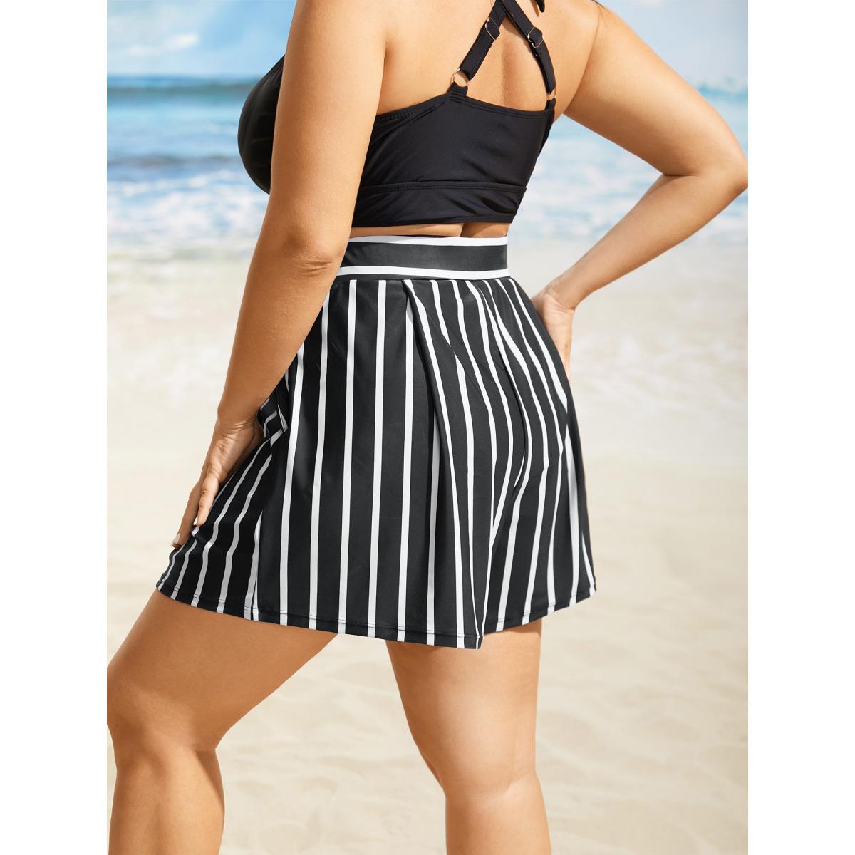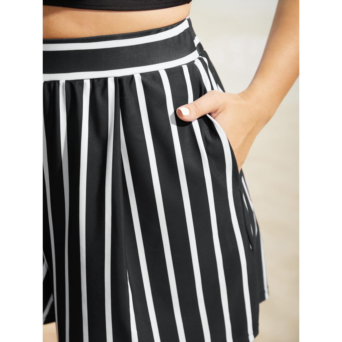 Plus Size Contrast Striped Elastic Waist Pocket Swim Bottom Women's Swimwear Black Beach Non High stretch Bodycon High Rise Side seam pocket Curve Swim Bottoms BloomChic 14-16/1X