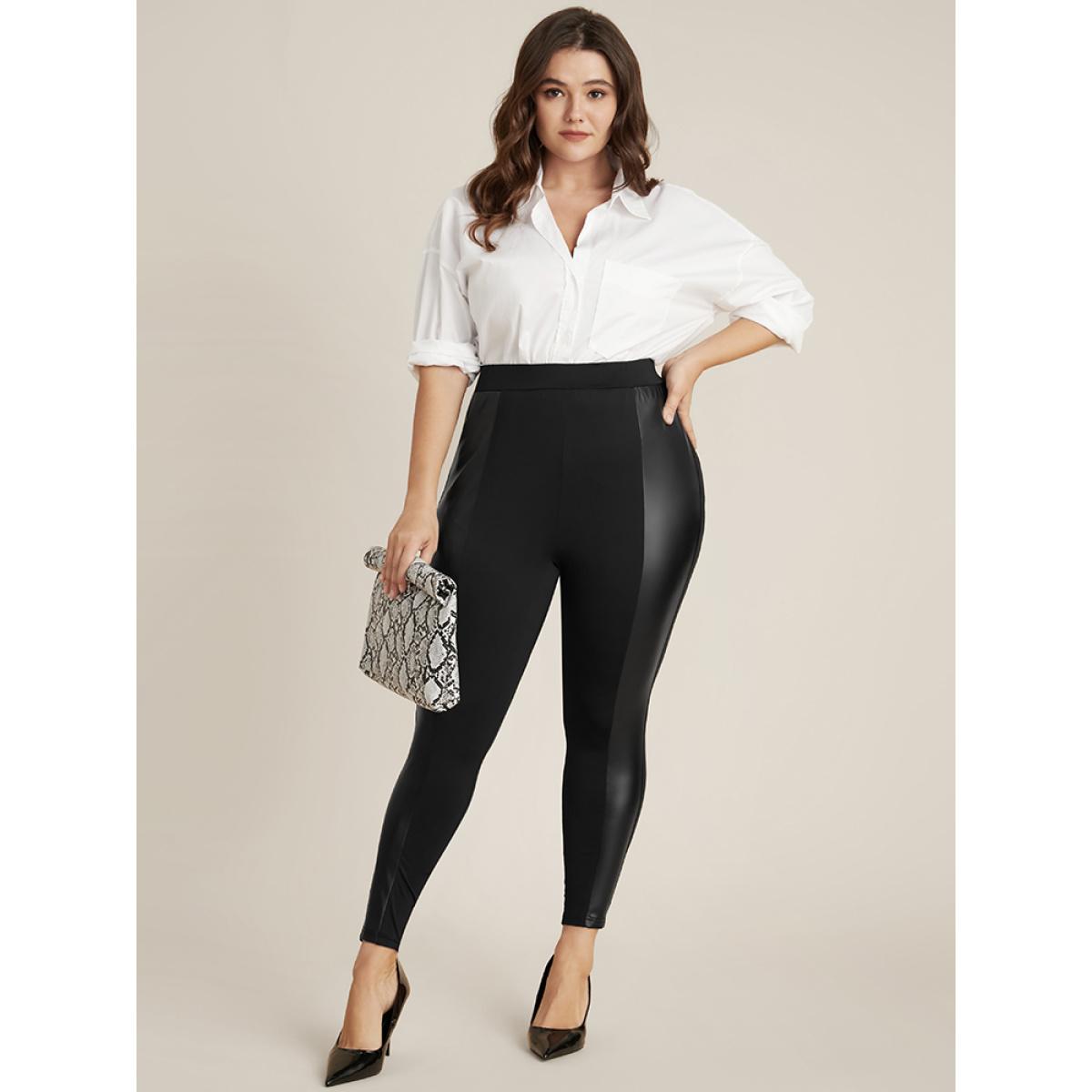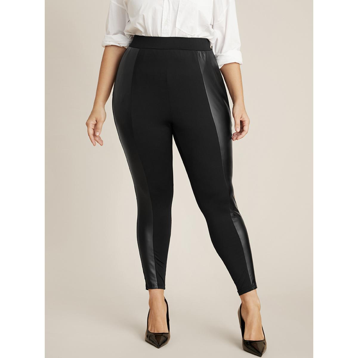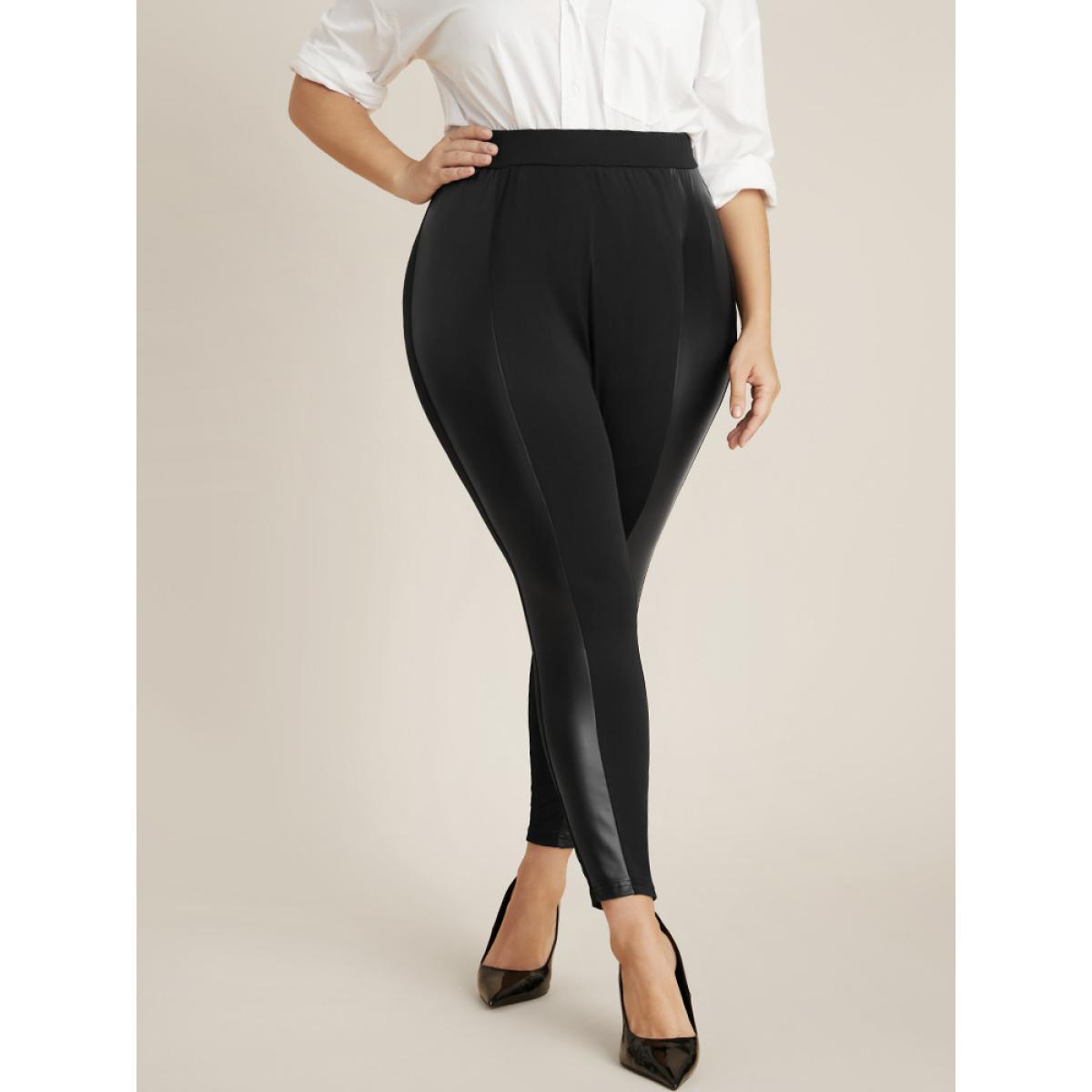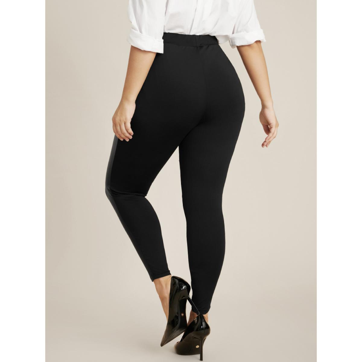 Plus Size Contrast Striped Elastic Waist Skinny Leggings Women Black Party High stretch Skinny High Rise Going out Leggings BloomChic 28/5X