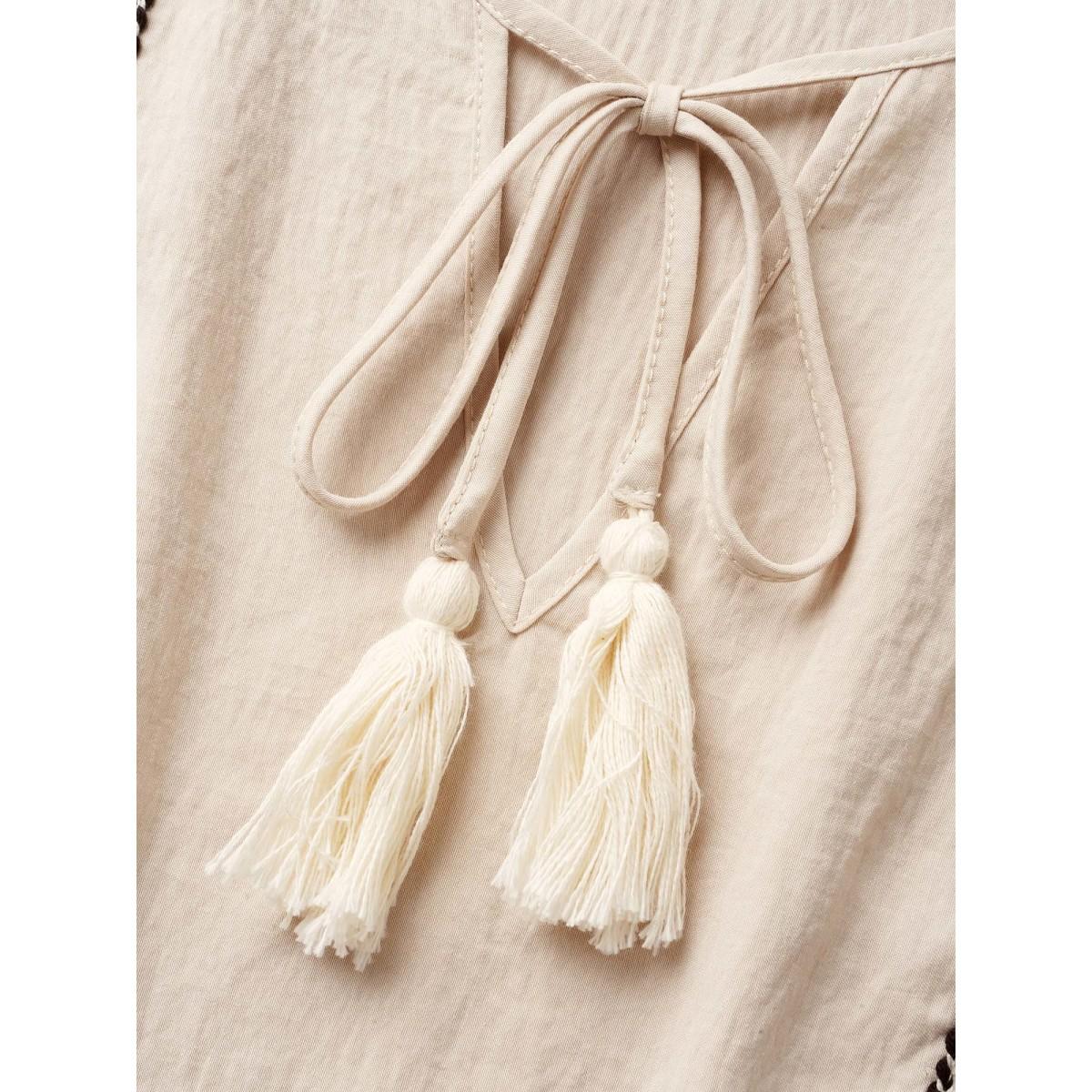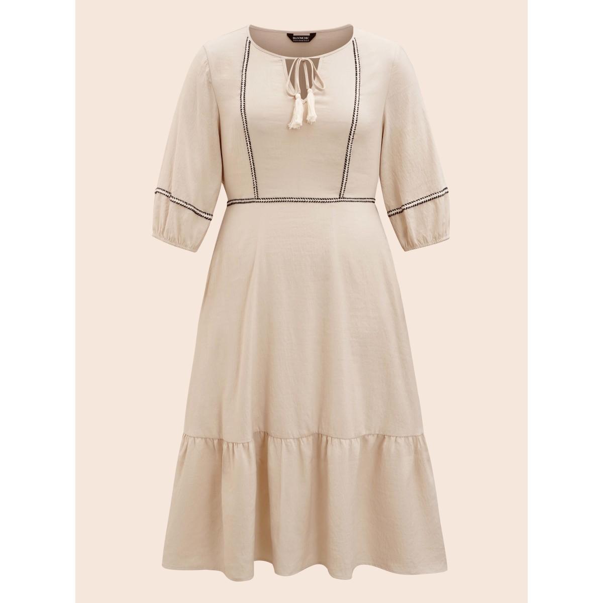 Plus Size Contrast Webbing Tassel Tie Knot Dress Apricot Women Resort Tie knot V-neck Elbow-length sleeve Curvy BloomChic 14-16/1X Product Image