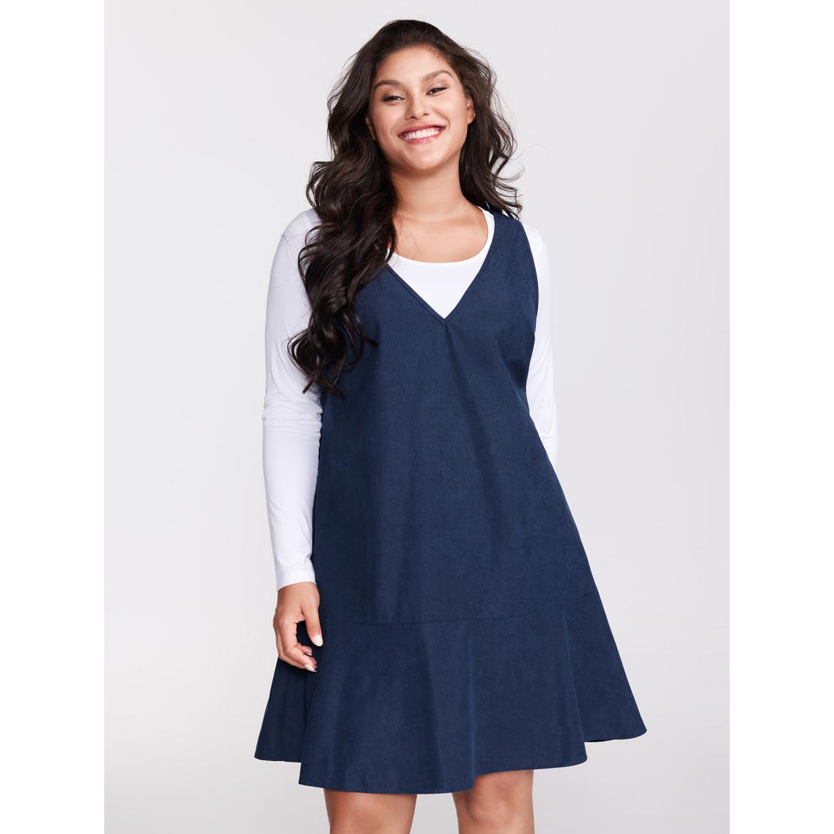 Plus Size Corduroy Overall A-Line Adjustable Mini Dress Indigo Women Leisure V-neck Sleeveless Curvy BloomChic 22-24/3X