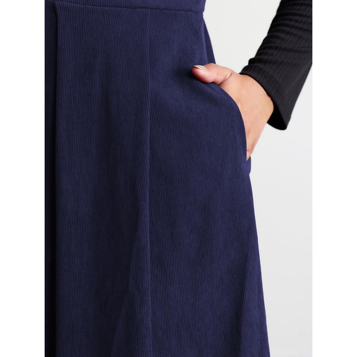 Plus Size Corduroy Stretchy Waist V-Neck Midi Dress Indigo Women Timeless Pleated Deep V-neck Sleeveless Curvy BloomChic 14-16/1X Product Image