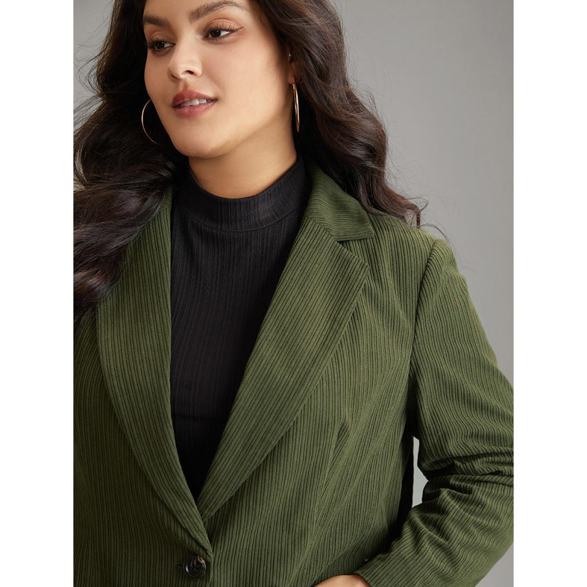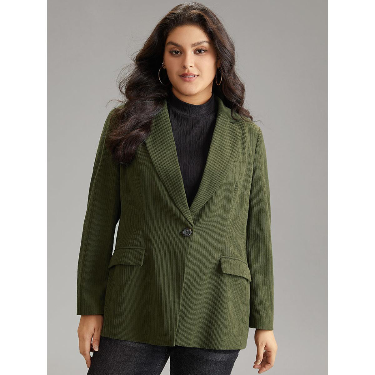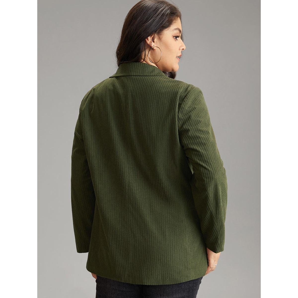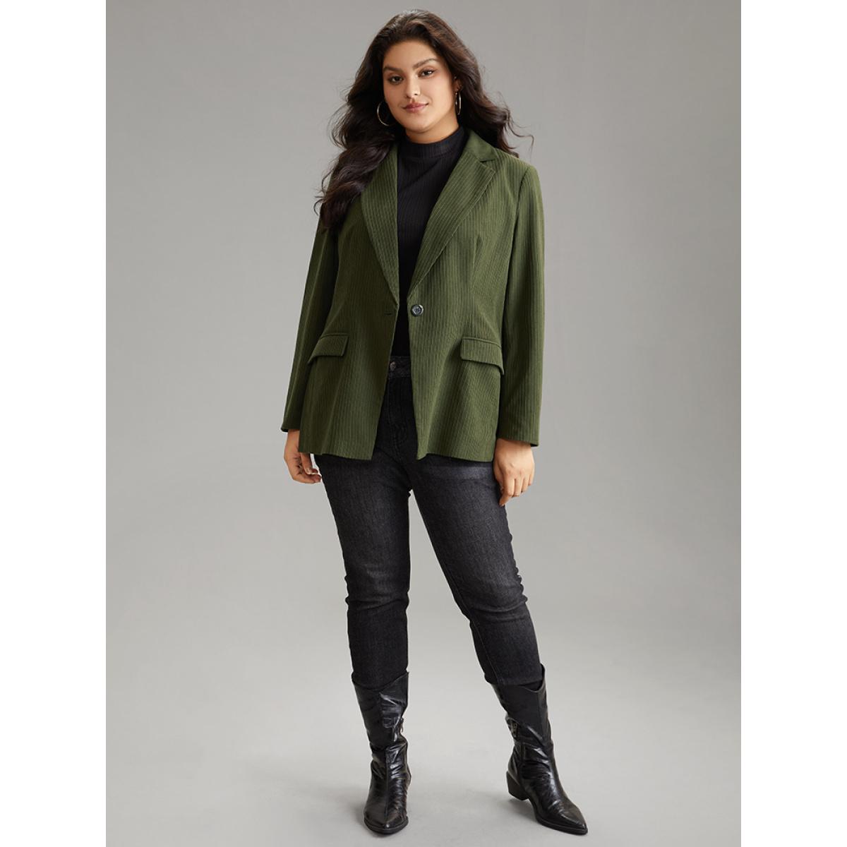 Plus Size Corduroy Suit Collar Button Up Flap Pocket Blazer ArmyGreen Women Office Plain Texture Sleeve Long Sleeve Suit Collar 28/5X Pocket Work From Home Blazers BloomChic