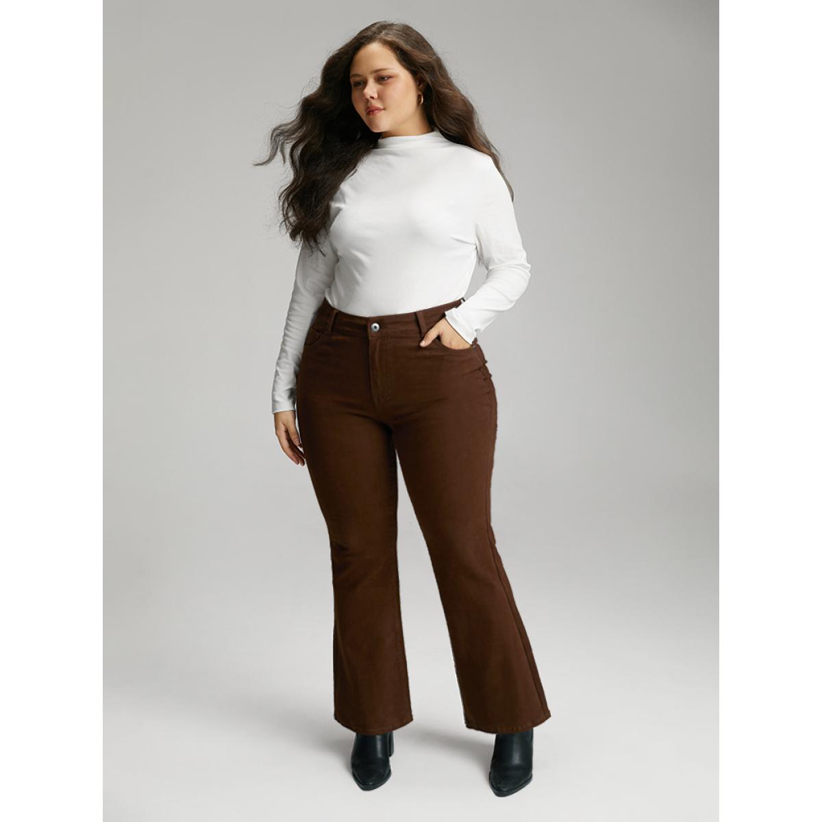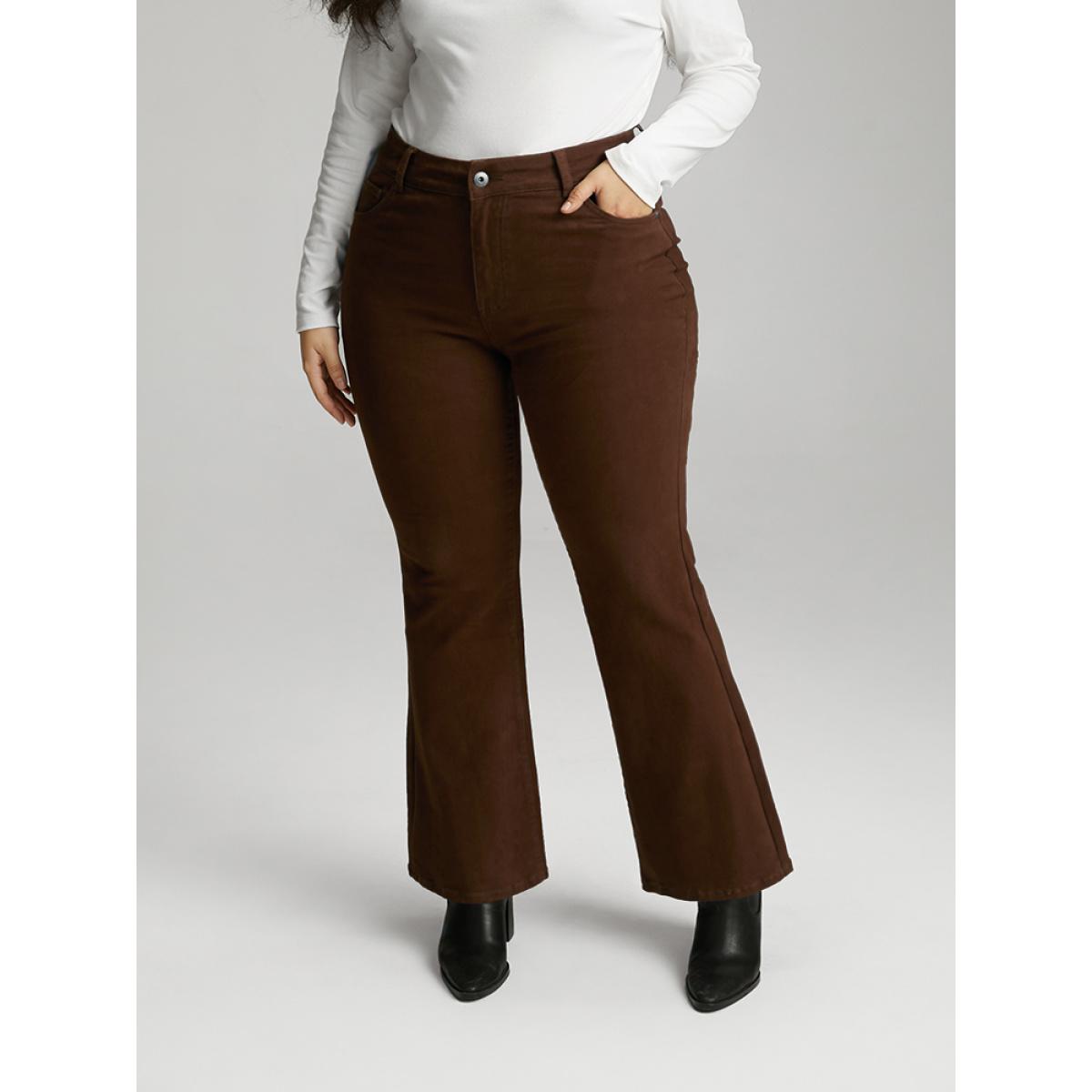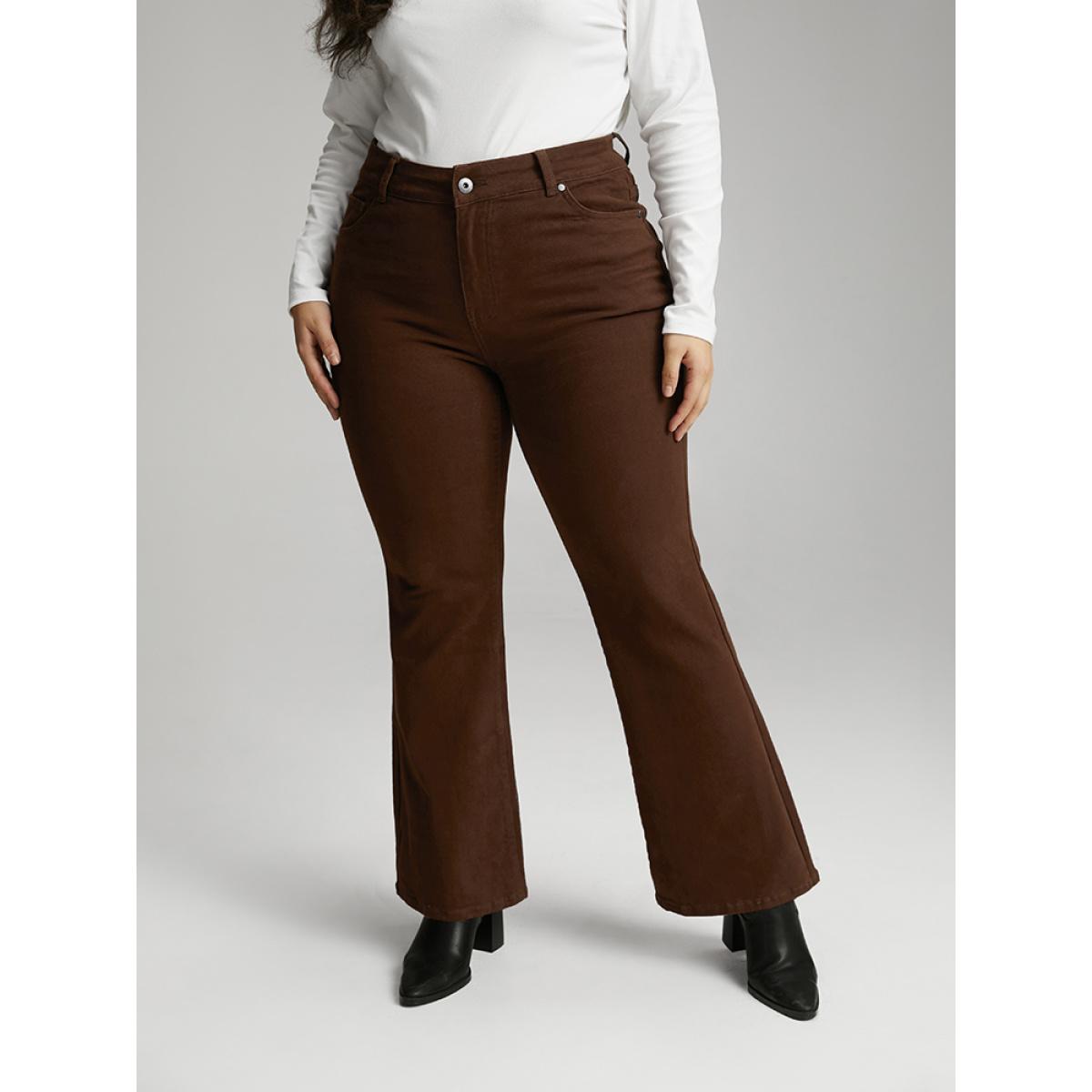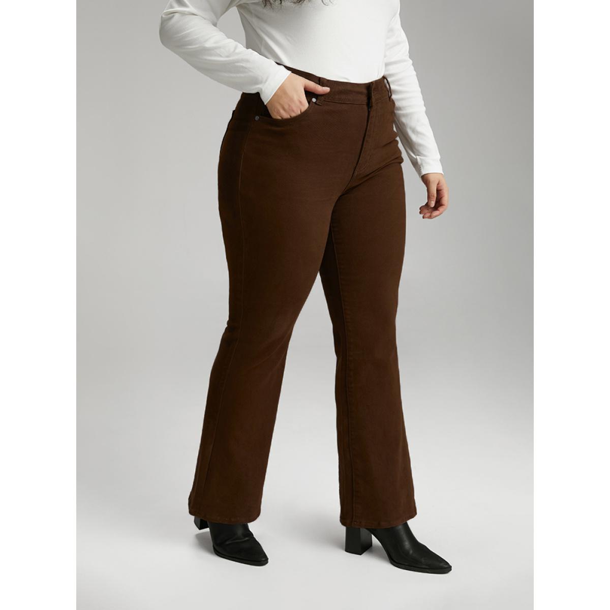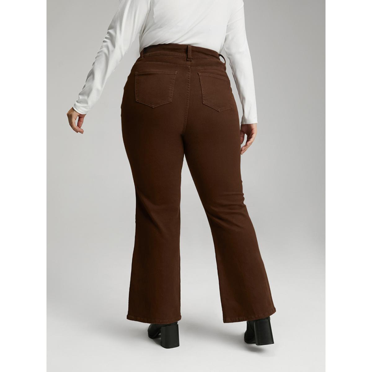 Plus Size Cotton Bootcut Color Wash High Rise Jeans Women DarkBrown Casual Plain Plain High stretch Pocket Jeans BloomChic 14/1X