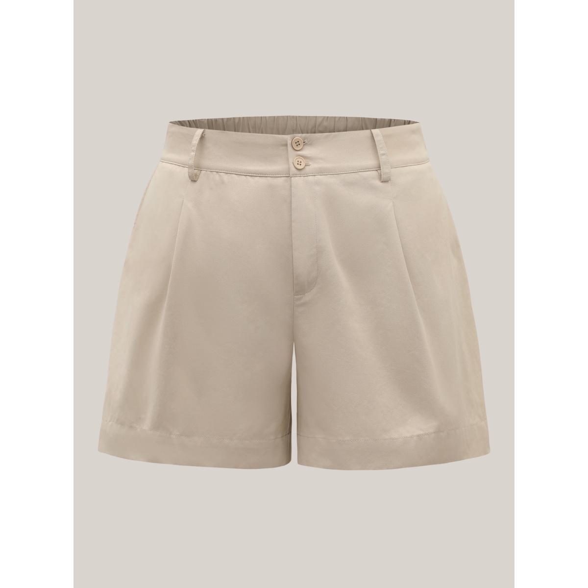 Plus Size Plain Slant Pocket Curved Hem Button Detail Shorts Women LightBrown Elegant Plain Dailywear Shorts BloomChic 22-24/3X