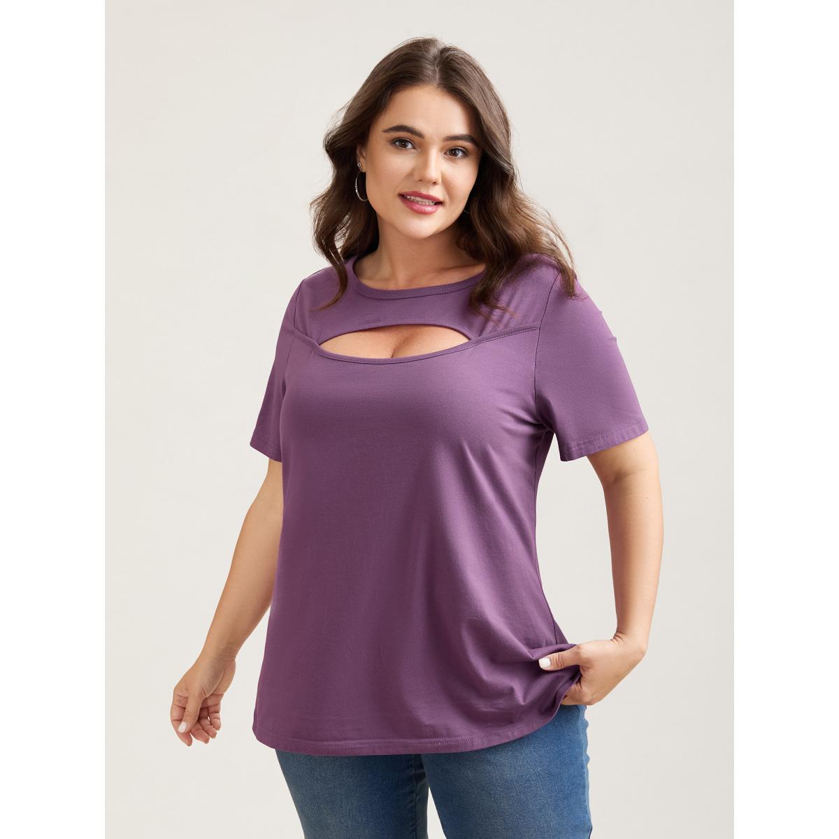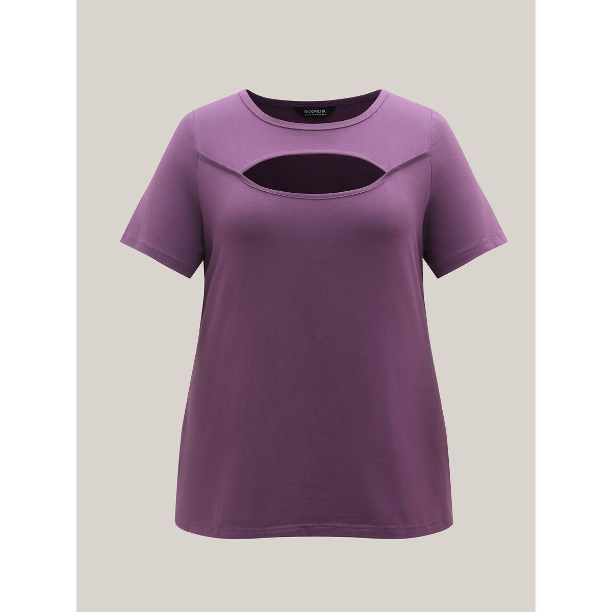 Plus Size Cotton Flirty Cutout Curvy T-Shirt Mauve Women Casual Cut-Out Round Neck Everyday T-shirts BloomChic 18-20/2X