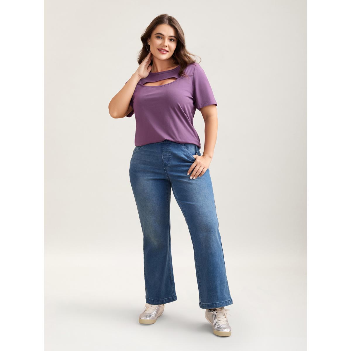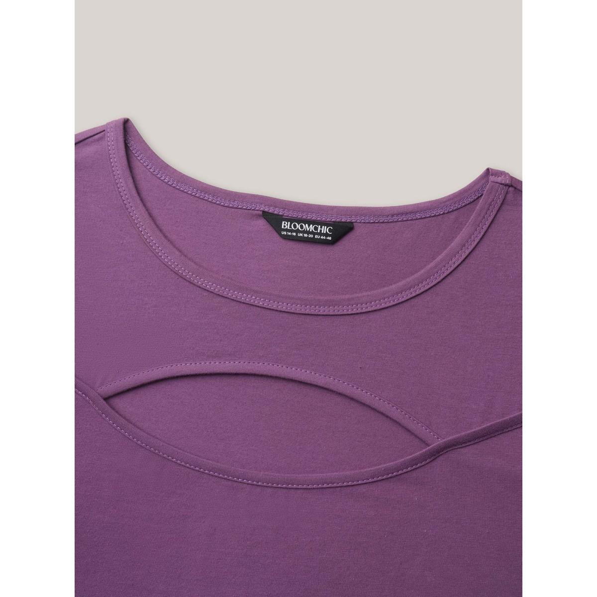 Plus Size Crew Neck Cut Out Wrap T-shirt Lilac Women Casual Cut-Out Round Neck Everyday T-shirts BloomChic 14-16/1X
